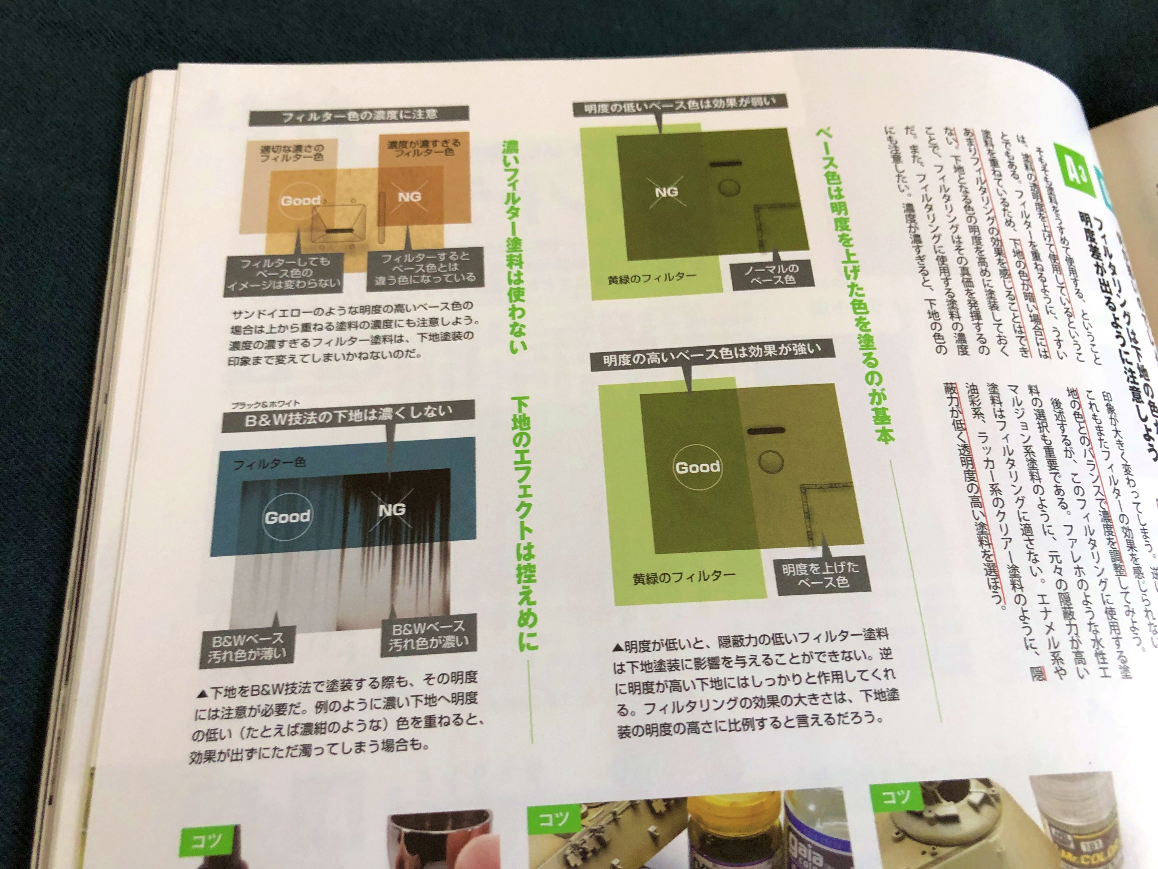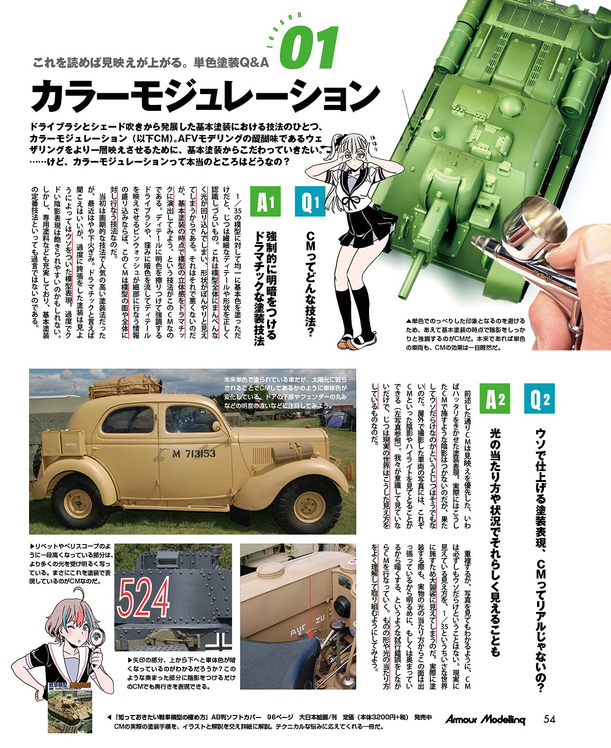 '몰드가 적은 면이 많은 차량을 칠하는 법' 밀리터리 킷 외에도 건프라 라면 물론 선을 일부러 넣거나 하는데, 그 부분을 웨더링이나 색변화로 자연스러움을 연출하고 있습니다. 이거 읽는 것만으로도 공부가 되는 것 같습니다.