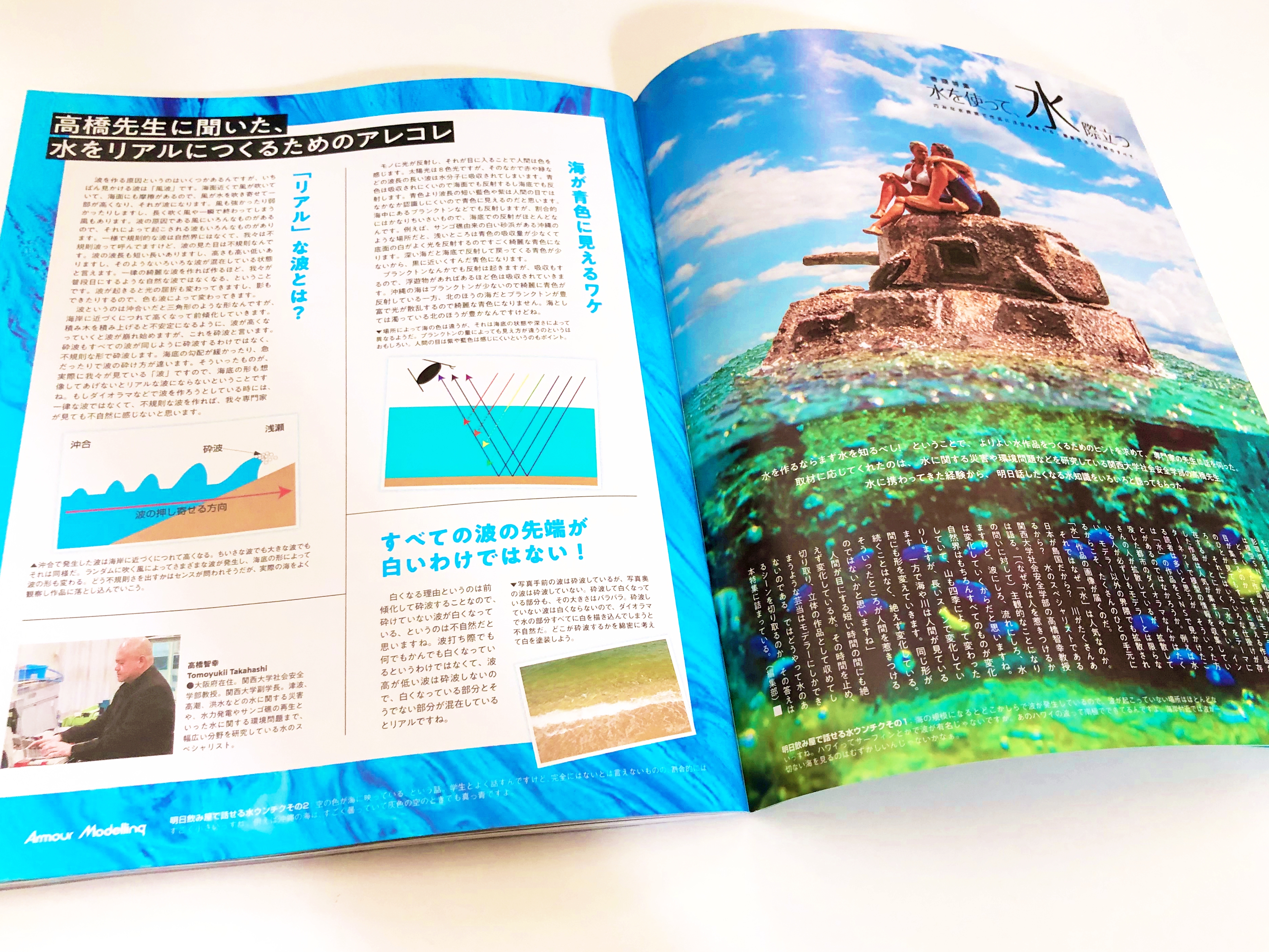 프로 모델러에 의한 멋진 작례, How to 뿐만이 아니라, 전문가 선생님의 물결 모양, 물빛에 대한 해설도 게재.
