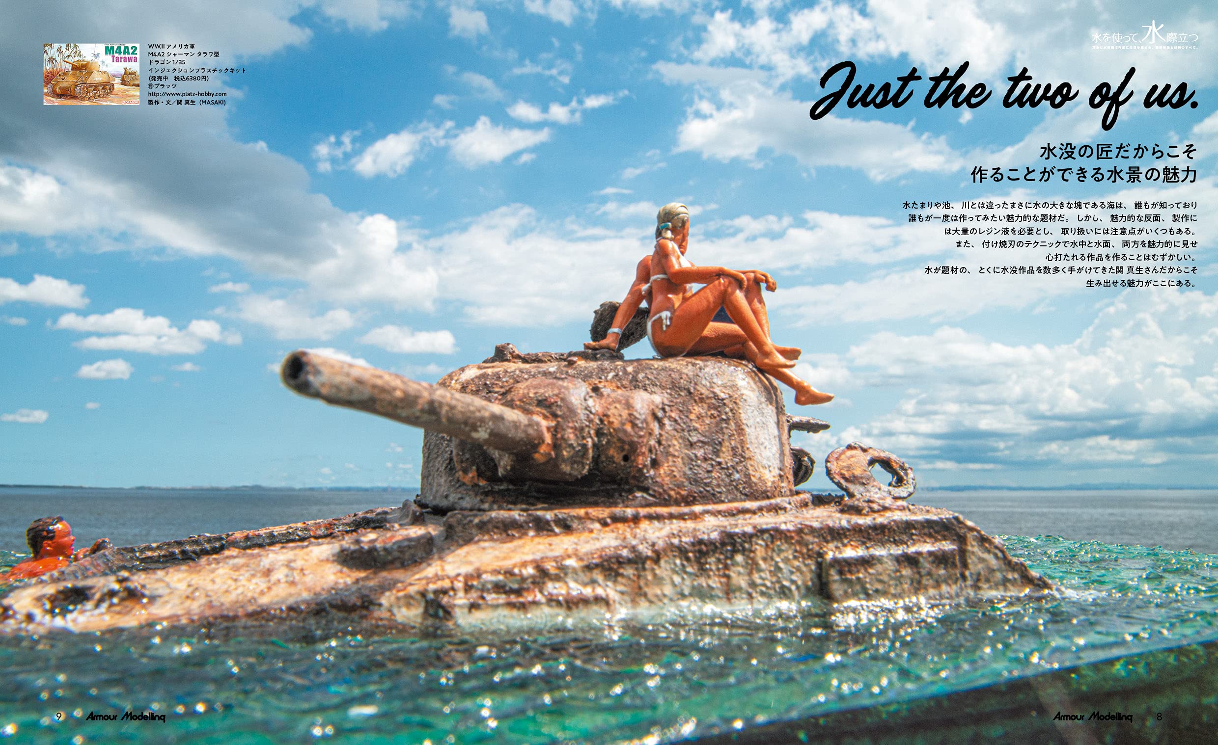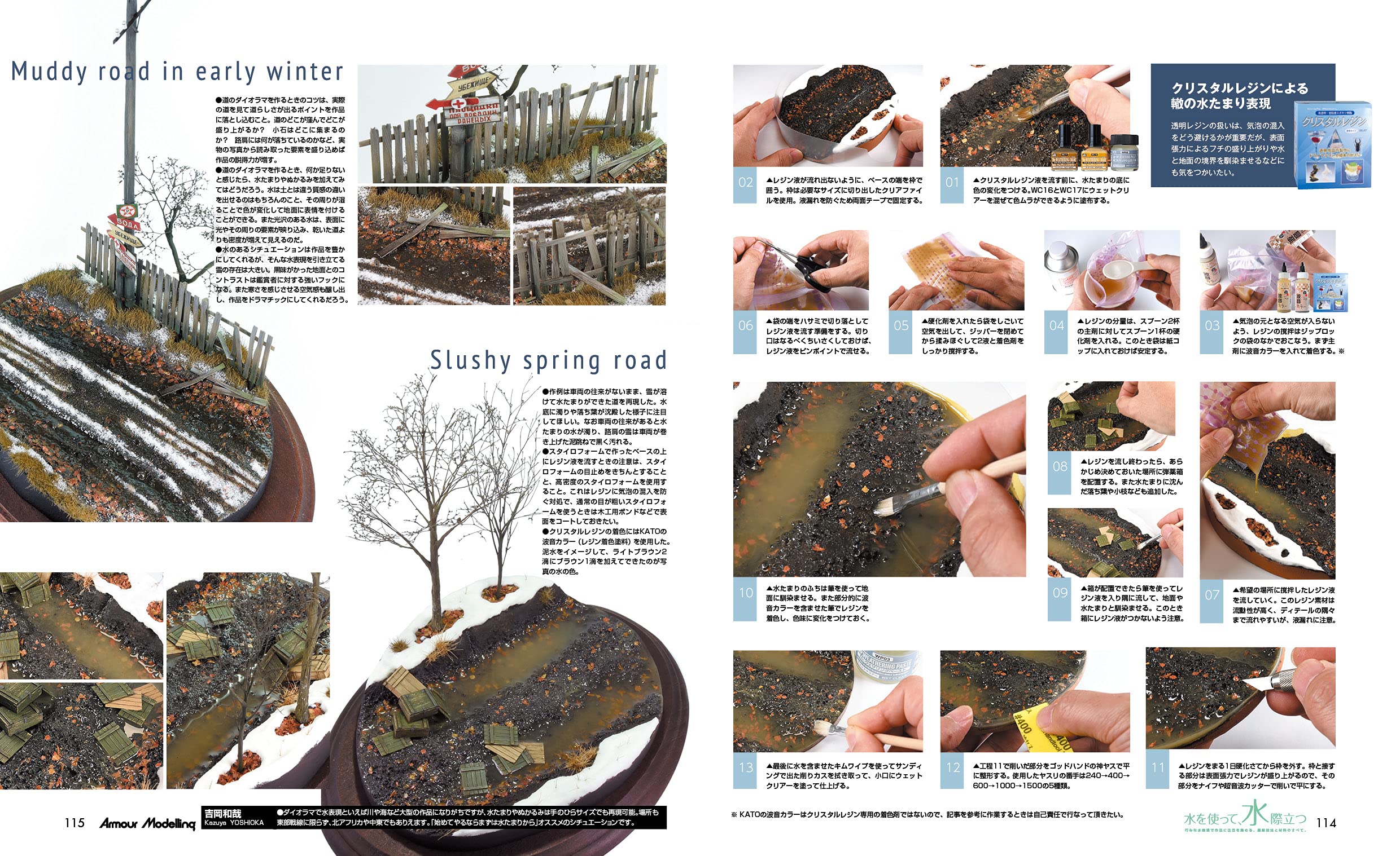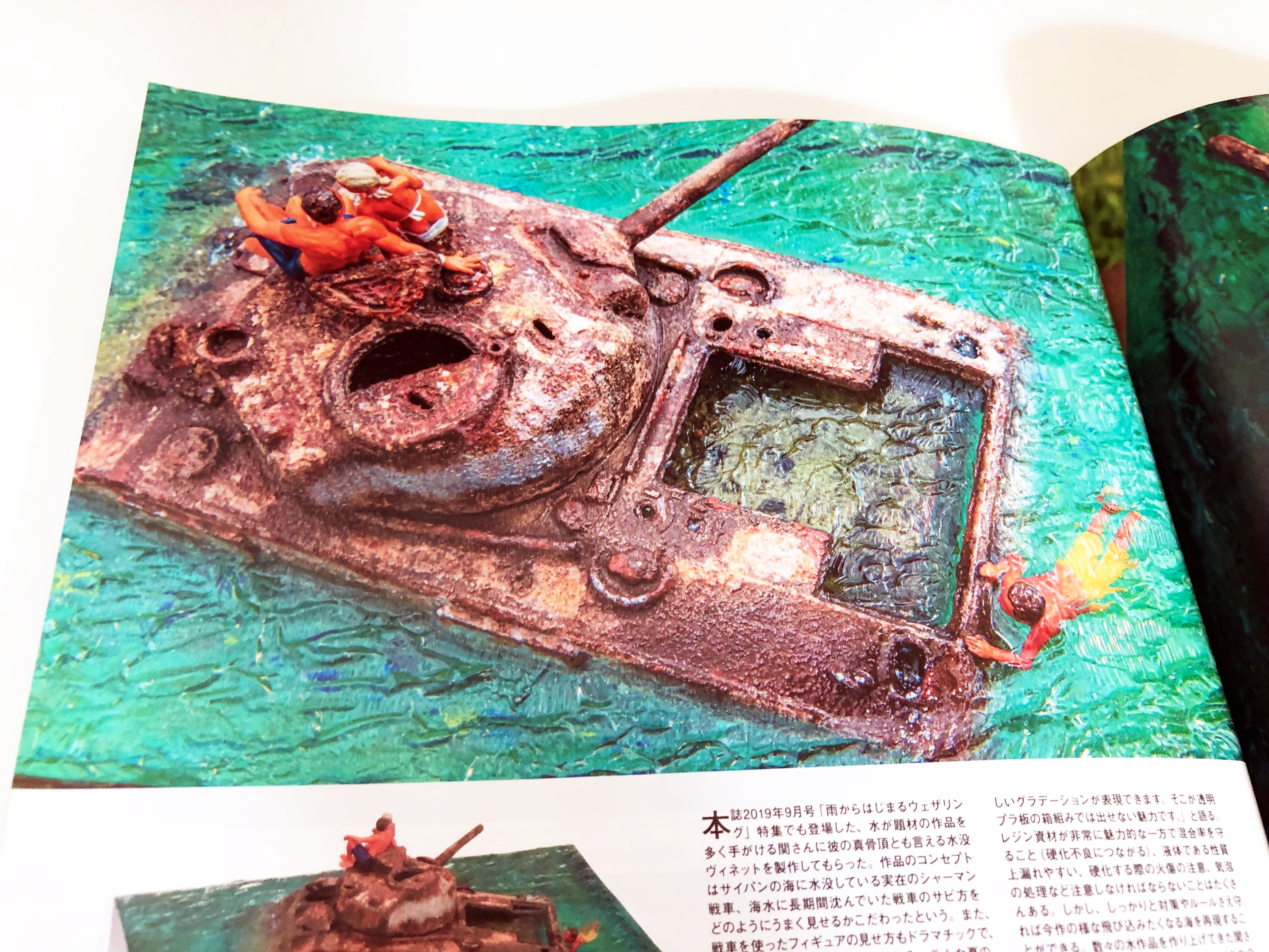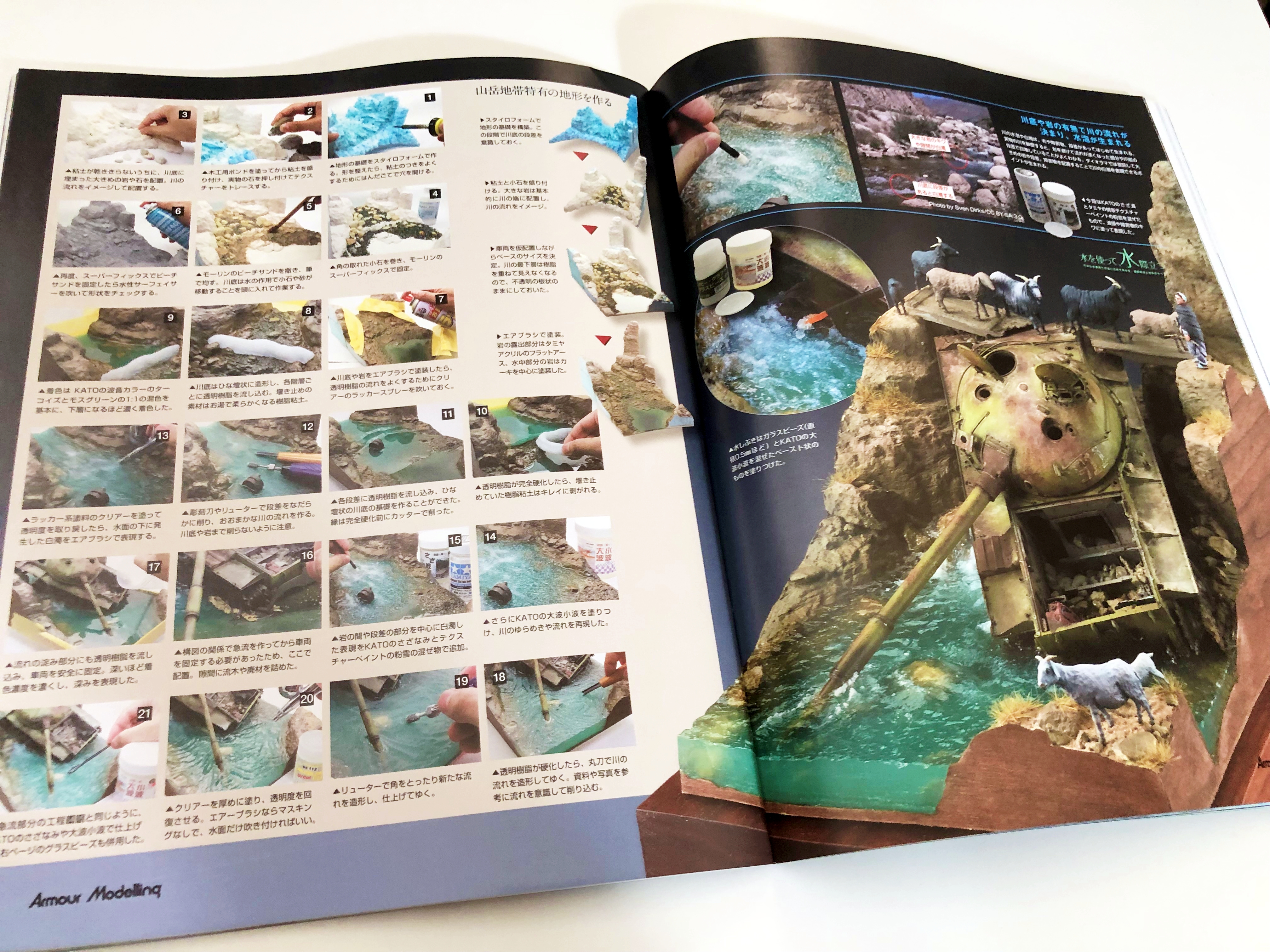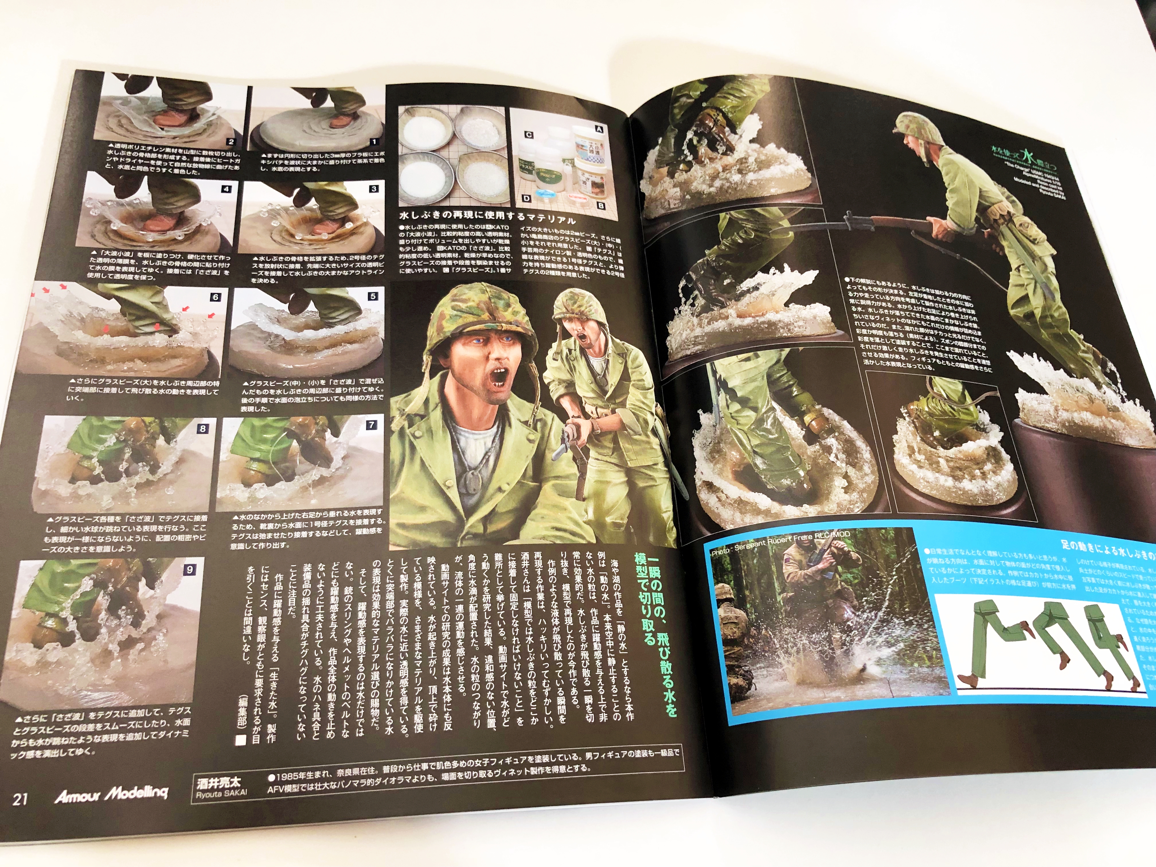 「물을 사용하여, 더 돋보이게!」라고 타이틀로 바다나 강, 웅덩이나 물보라 등의 제작 방법을 자세하게 소개.