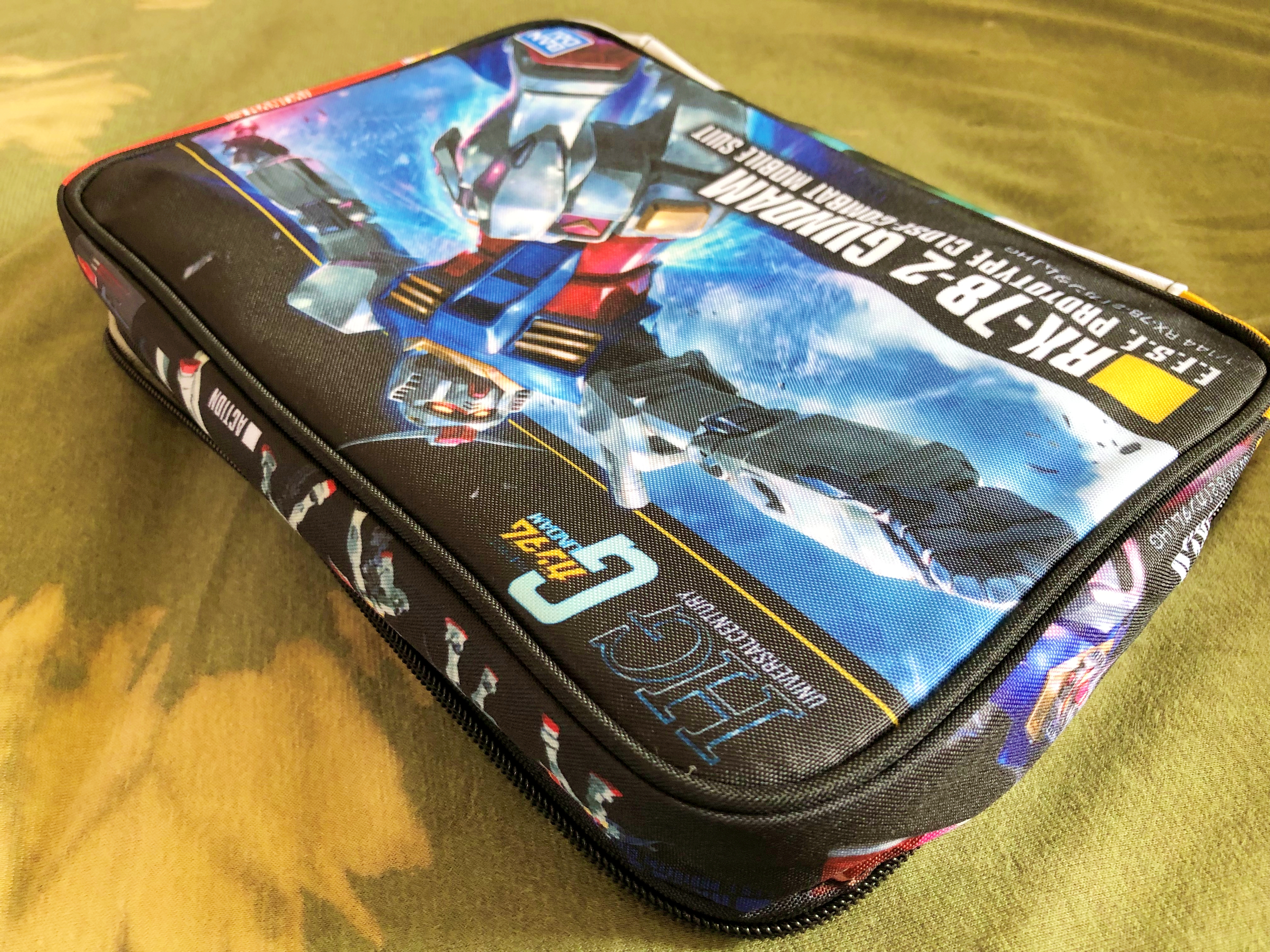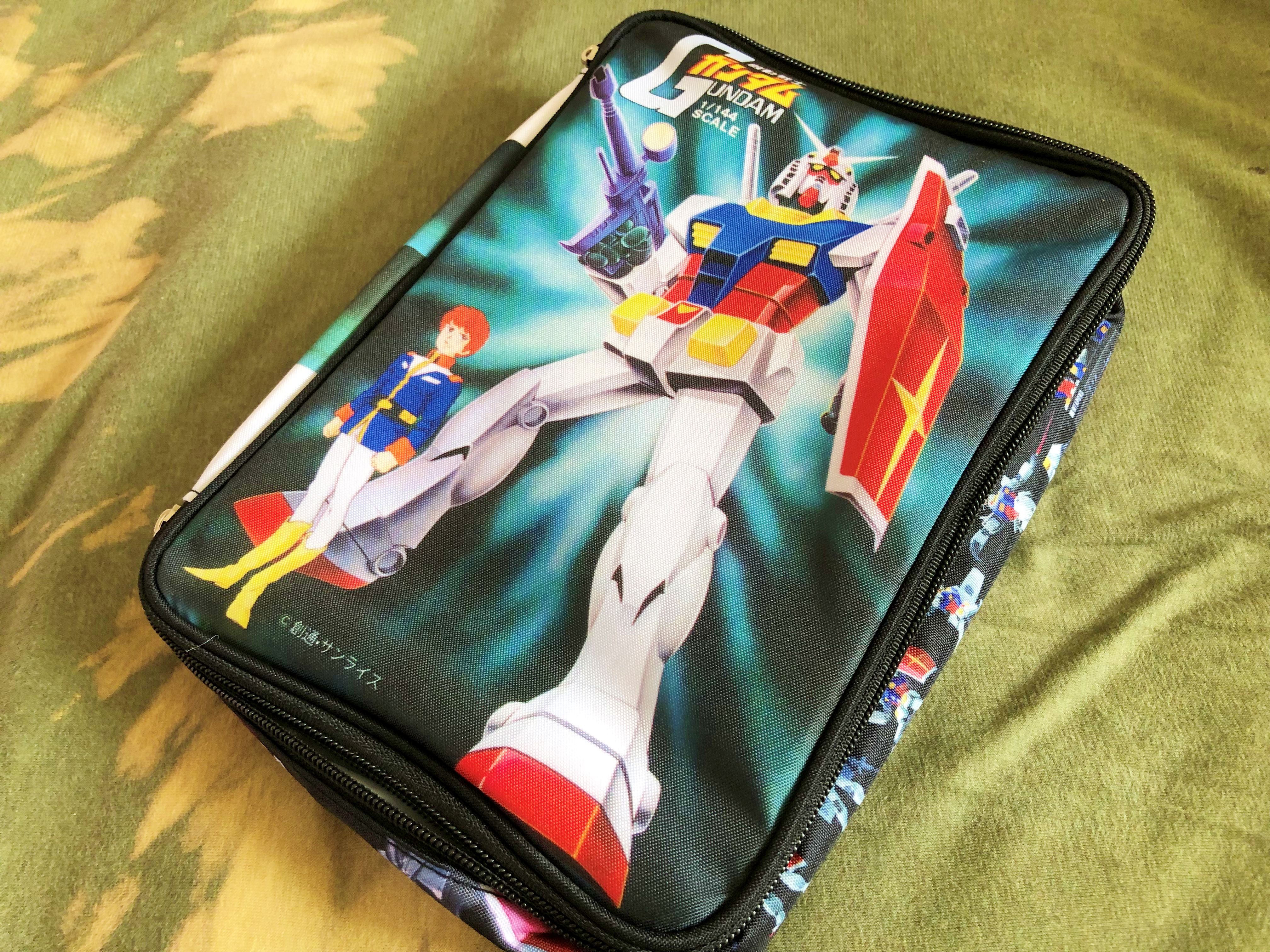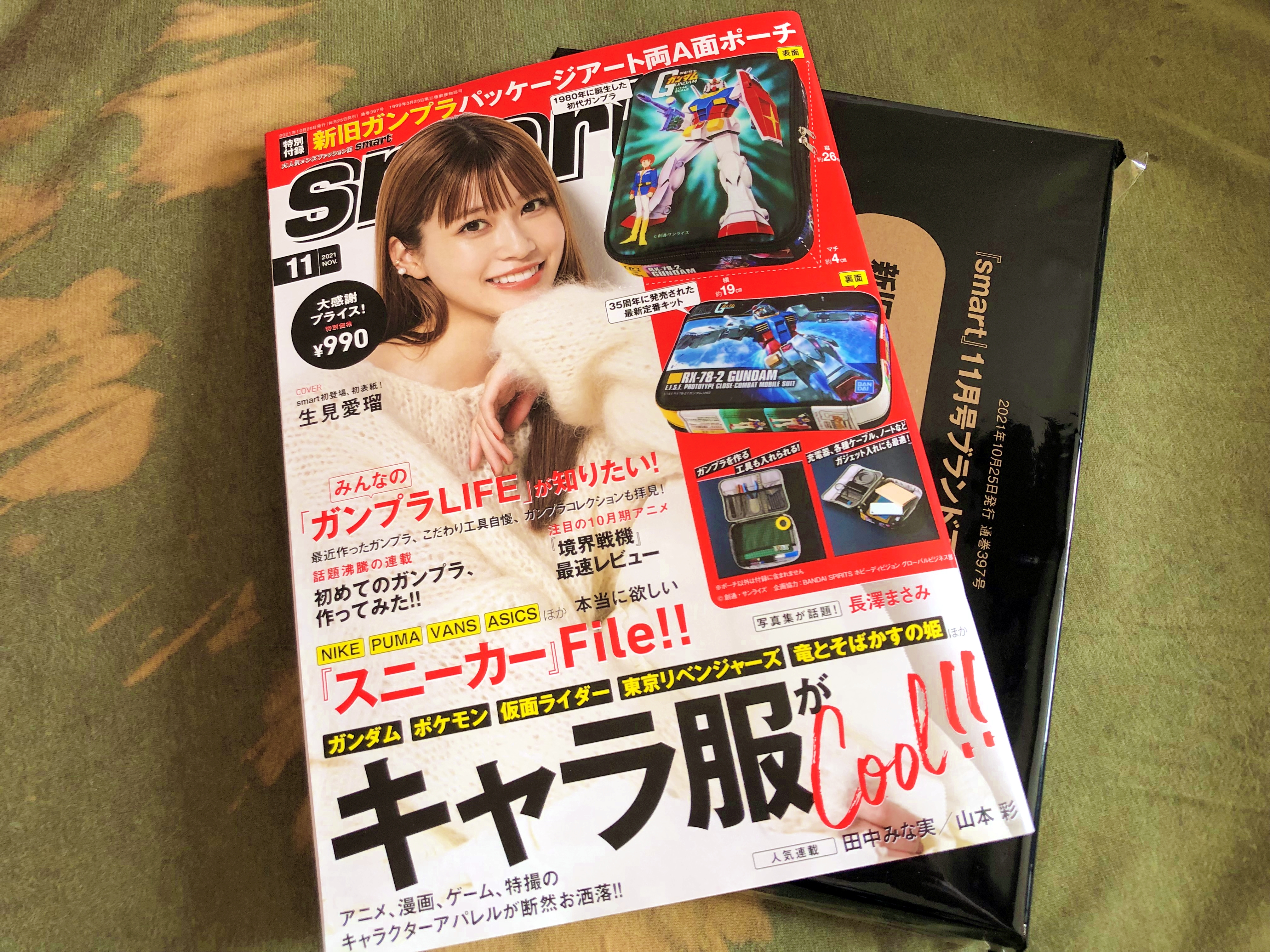 표지에서 보이다시피 건담 프라모델의 상자가 인쇄된 도구 가방이 부록으로 끼워져 있습니다.