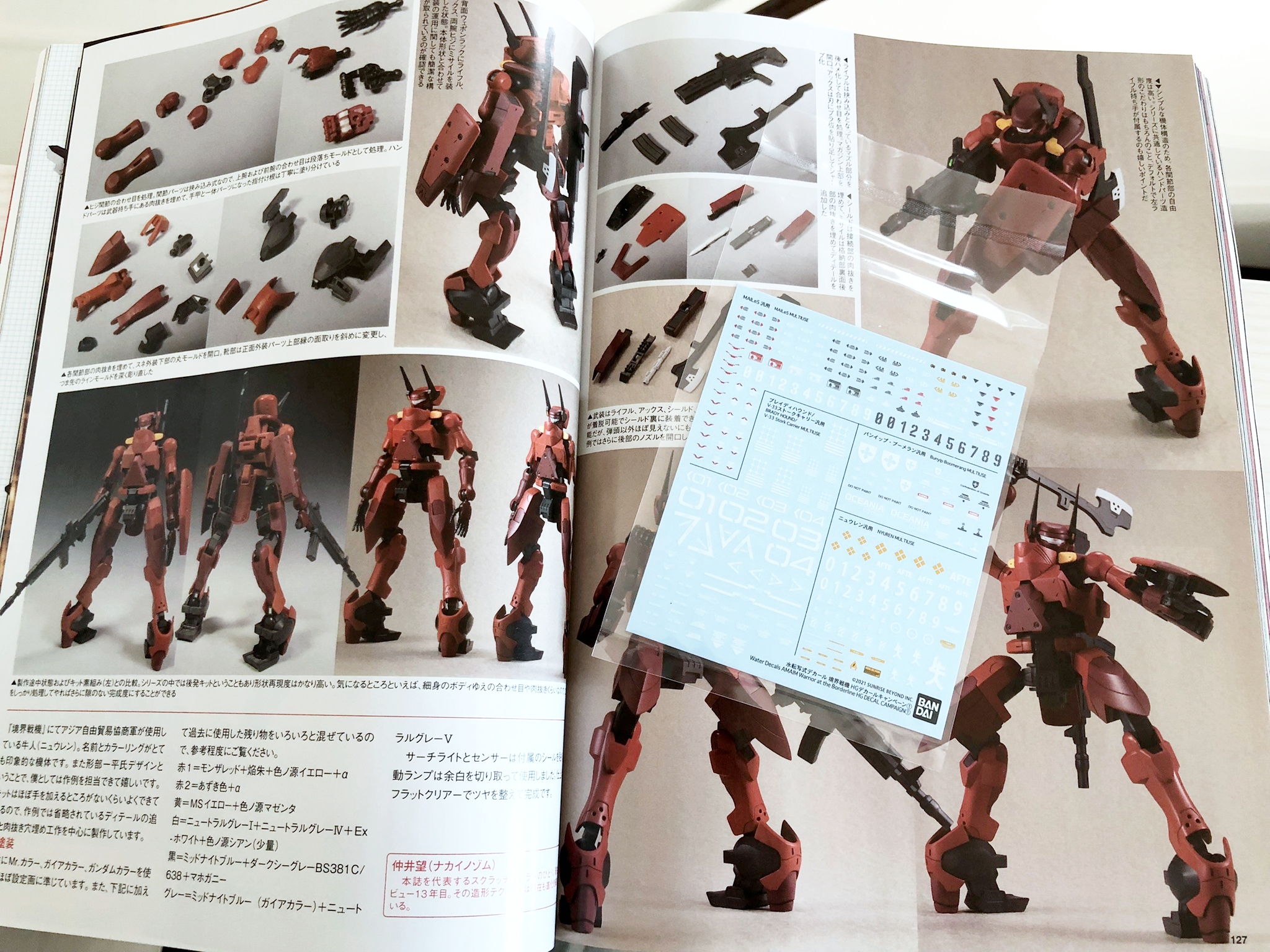 특히 저 드라이 데칼을 붙일때, 필름을 떼어나고 나서 다시 데칼 보호지를 위에 놓고 다시 한번 문질러 주는 것은 처음 보는 테크닉이군요. 게다가 테트론 씰도 물에 살짝 적셔서 붙이며 위치를 찾는 기발한 테크닉들이 실려있습니다.
