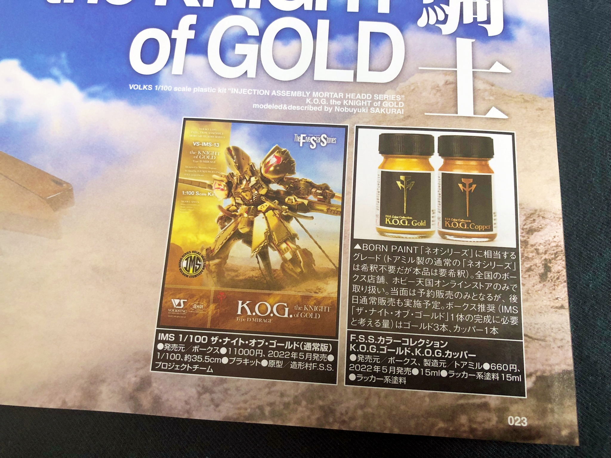 그 중에서도 의욕적으로 인젝션 키트를 릴리스하는 보크스의 IMS (INJECTION ASSEMBLY MORTAR HEADD SERIES) 시리즈를 시작으로, 본지로서는 91년 2월호 이래, 31년만의 총력 특집을 감행. IMS 시리즈 중 인기 기체를 픽업하여 각각의 테마를 기초로 제작. 물론 고딕메이드도 신규 작례부터 최신 기체까지 라인업. 나가노 마모루씨의 인터뷰를 함께하여 F.S.S.의 매력을 재차 풀어 갑니다.