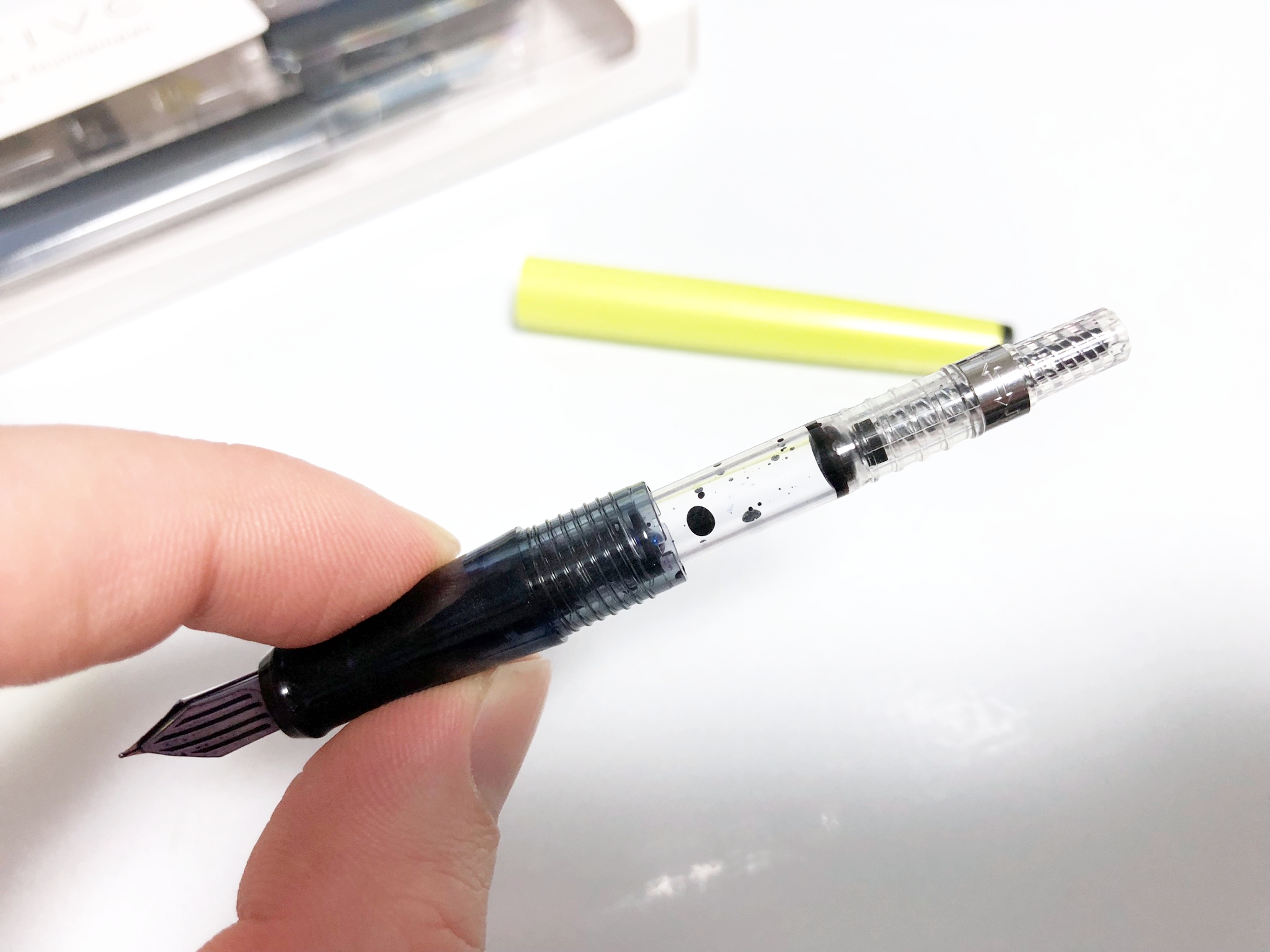 평소에 만년필을 앞부분을 쥐고 눌러 쓰는 방식으로 사용하는 분이라면 문제없지만, 저처럼 뒷 부분을 쥐고 가볍게 쓰는 사람은 주의가 필요하지요.