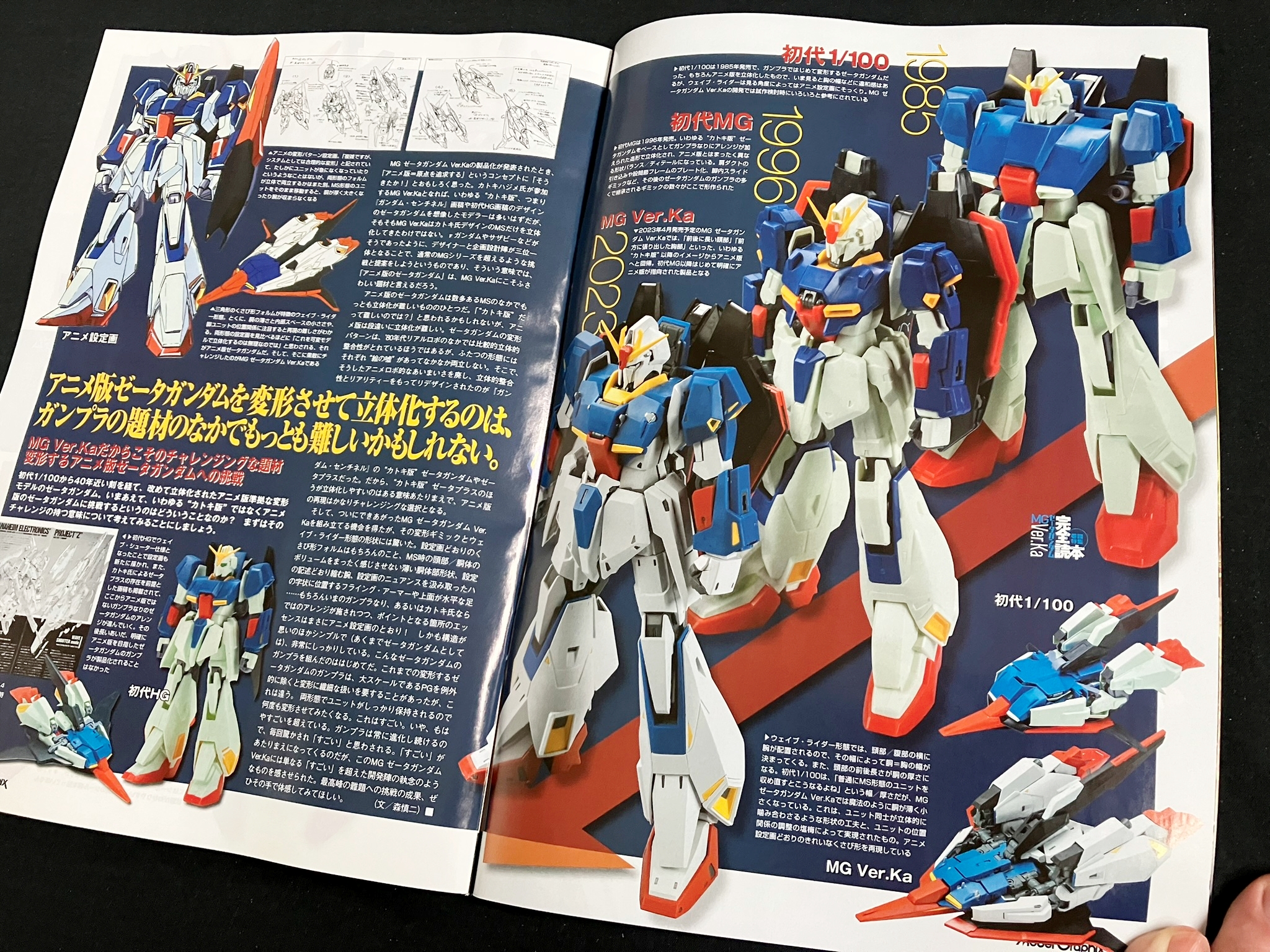 변형되는 MS는 많지만, 그 중에서도 입체화 난이도가 가장 높은 기체 중 하나가 바로 MSZ-006 제타건담입니다. 모빌 슈트 형태를 기본으로 하여 그대로 유닛을 변형 시키려고 하면 좀처럼 설정화의 웨이브 라이더같은 깔끔한 모습이 되지 않습니다. '애니메이션이니까 그냥 입체화하는 건 무리겠지'라고 무시하면 되겠지만, 그 무리함에 도전하여 멋지게 실현 되어 버린 것이 바로 이 MG 제타건담 Ver.Ka. 이번 달 호 권두 특집에서는 그런 MG Ver.Ka 최신작을 자세히 소개해 드리겠습니다.