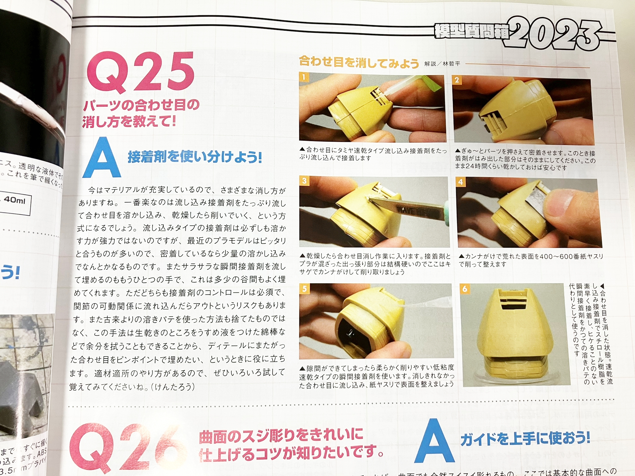 접착제와 사포를 이용한 접합선 제거 방법도 실려 있습니다.