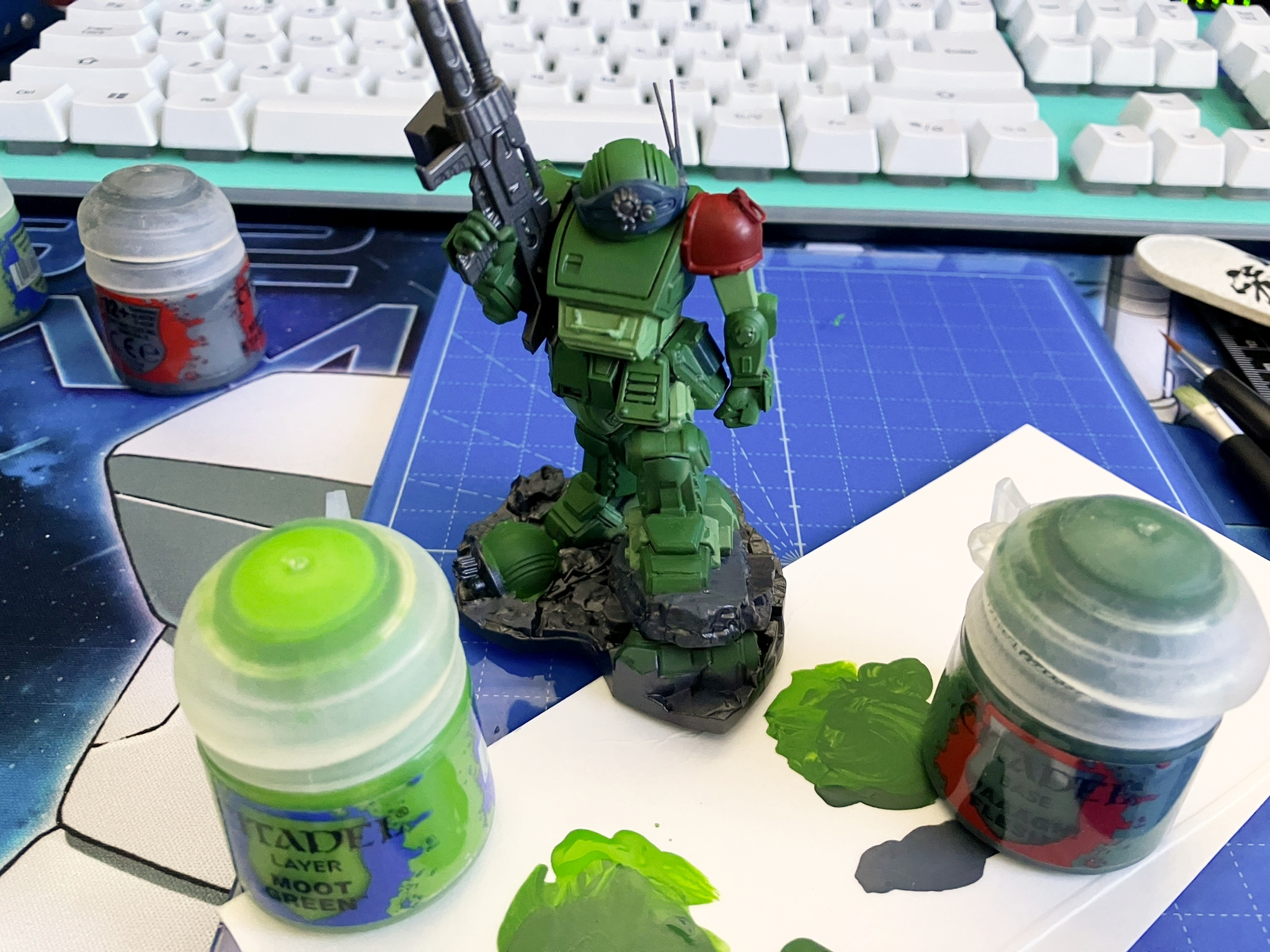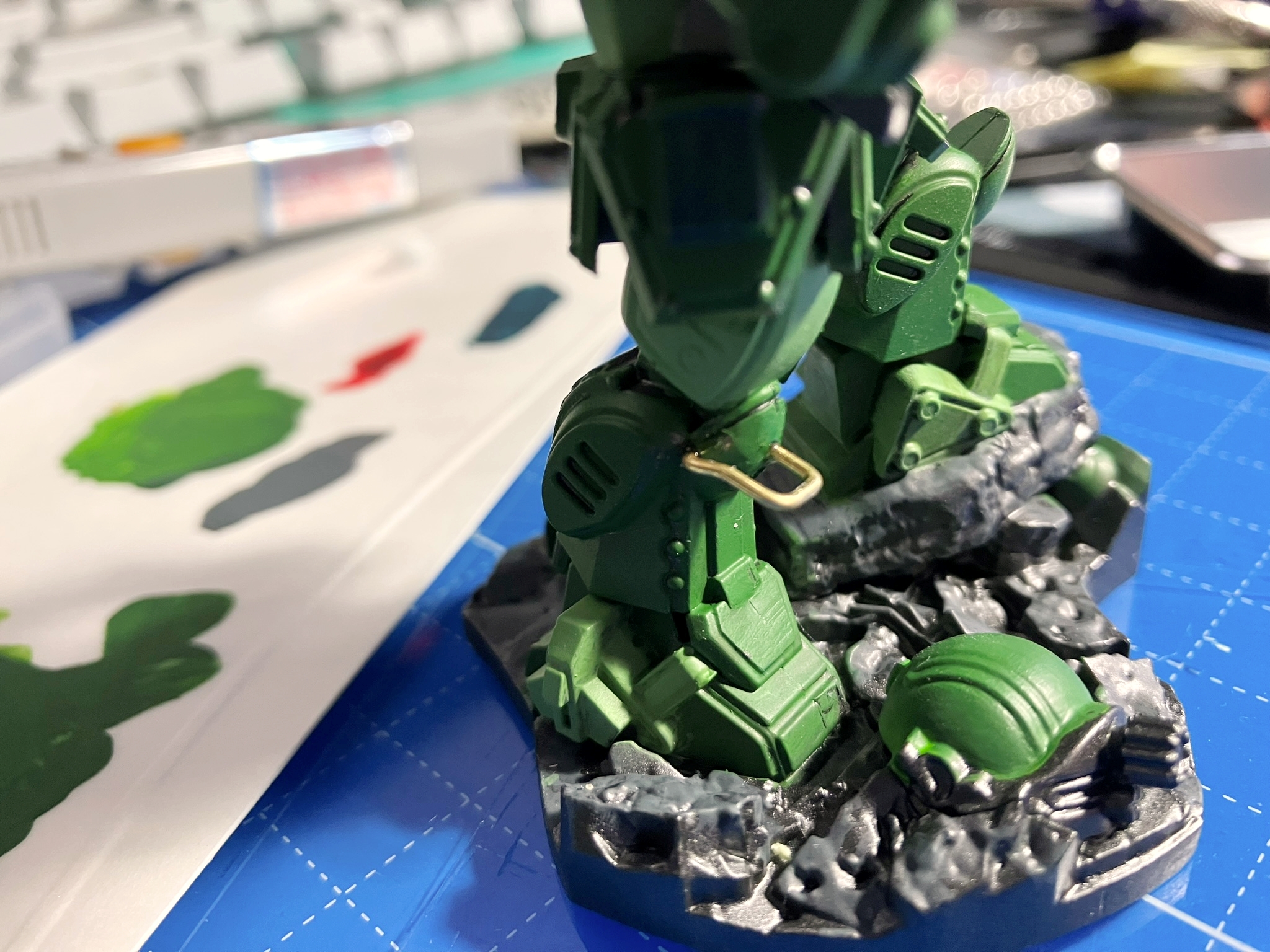 이 보톰즈를 상진하는 녹색에 딱맞는 색이 없어서 베이스 도료 '와프레쉬'와 레이어 도료인 '뭇트그린'을 반씩 섞어서 만들었습니다. 여담이지만 엄폐력이 적어 그라데이션을 표현할 때 좋은 레이어를 베이스 도료에 섞으면 엄폐력도 좋아지는 것은 물론에 붓자국도 잘 안남게 되는 것 같습니다.