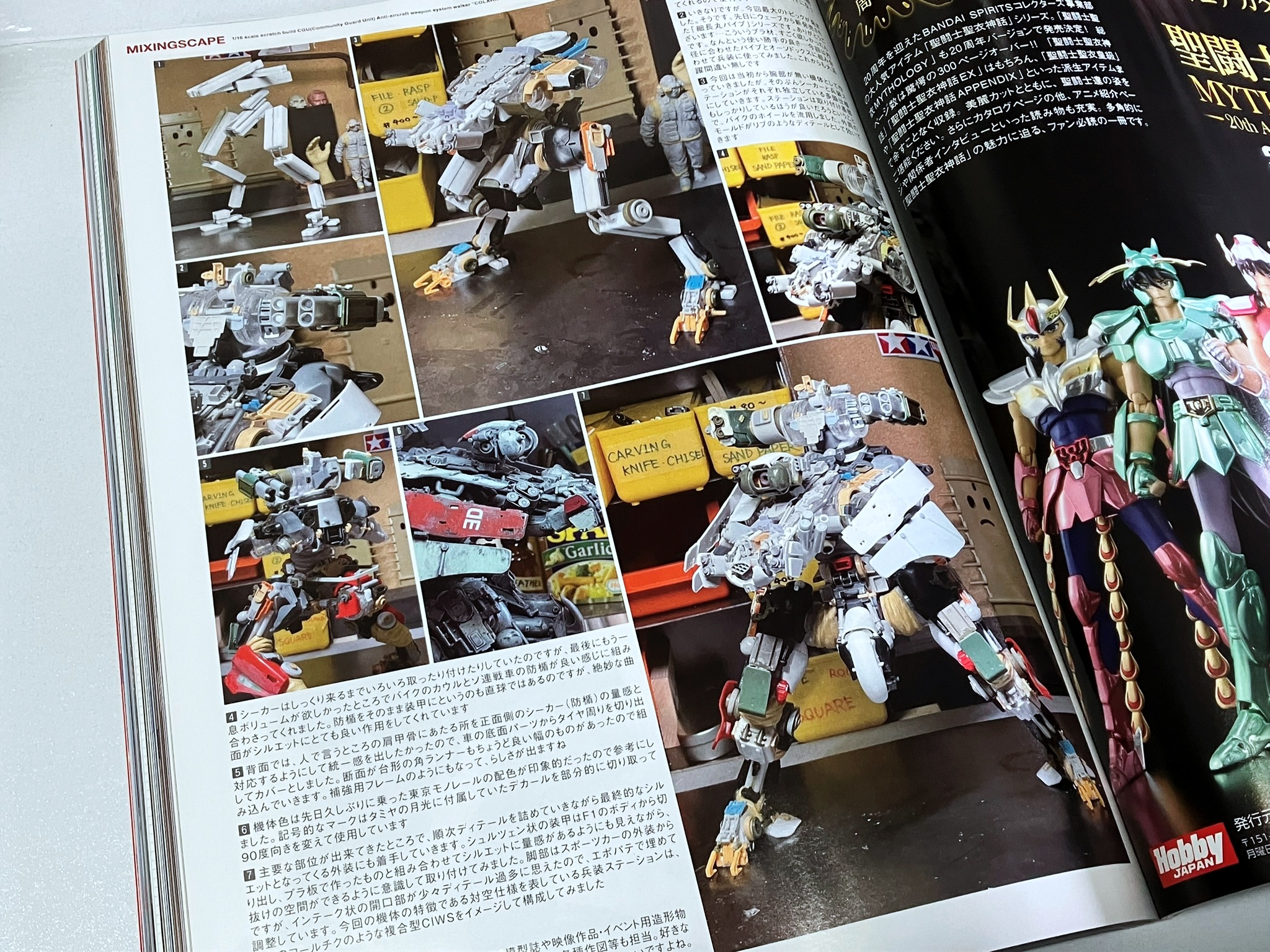 이번호 믹싱스케이프는 프라재료들도 보이지만, 백엔샵에서 구할 수 있는 보관 케이스 등 여러가지 실 생활의 파츠들이 눈에 띕니다. 덤으로 뒤에 보이는 도구의 보관 방식이 재미있습니다.