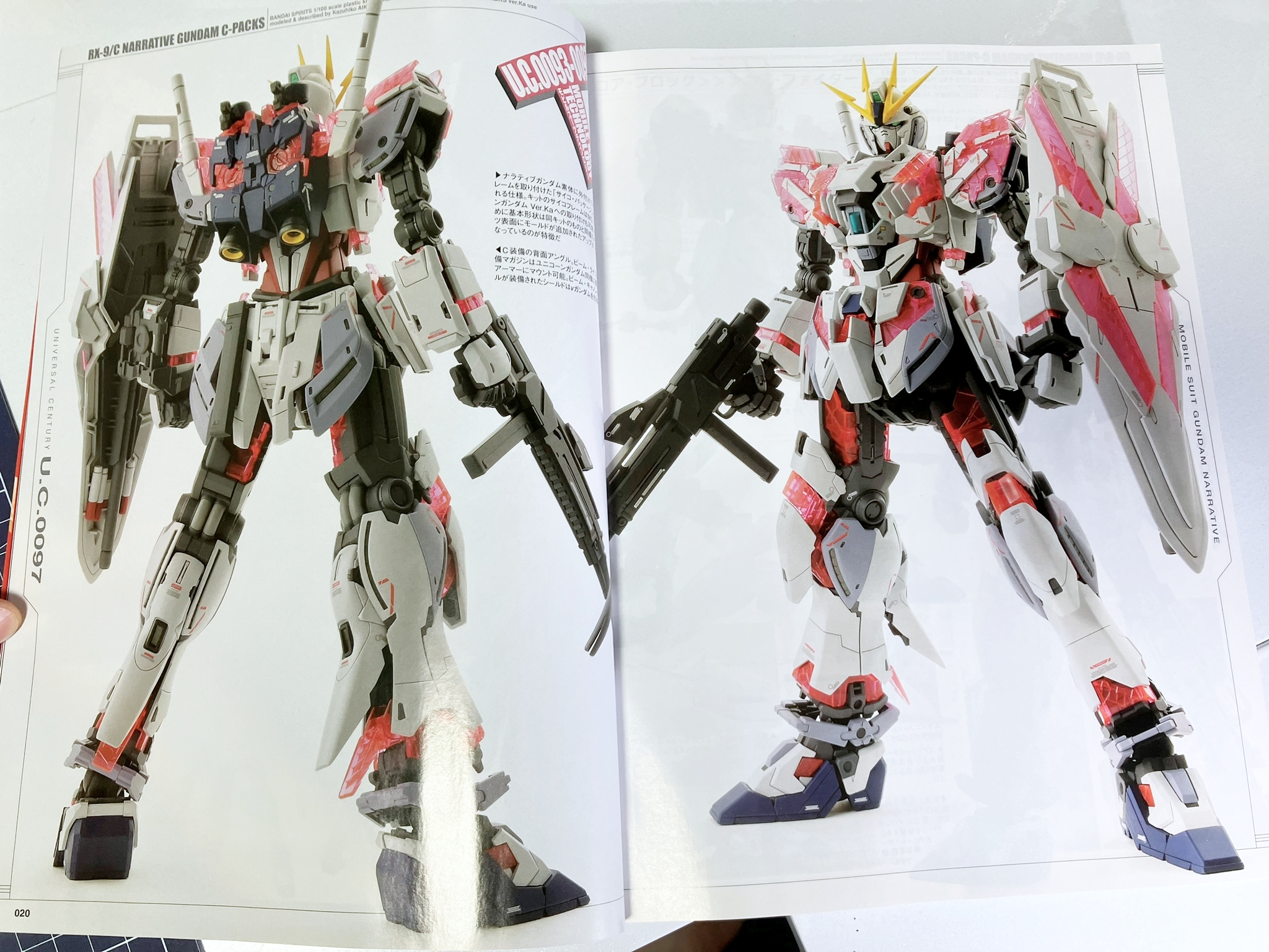 스토리를 정리한 페이지를 넘기자 마자 신작인 내러티브 건담이 특유의 시원시원한 자태를 뽐내며 맞이해주었습니다.