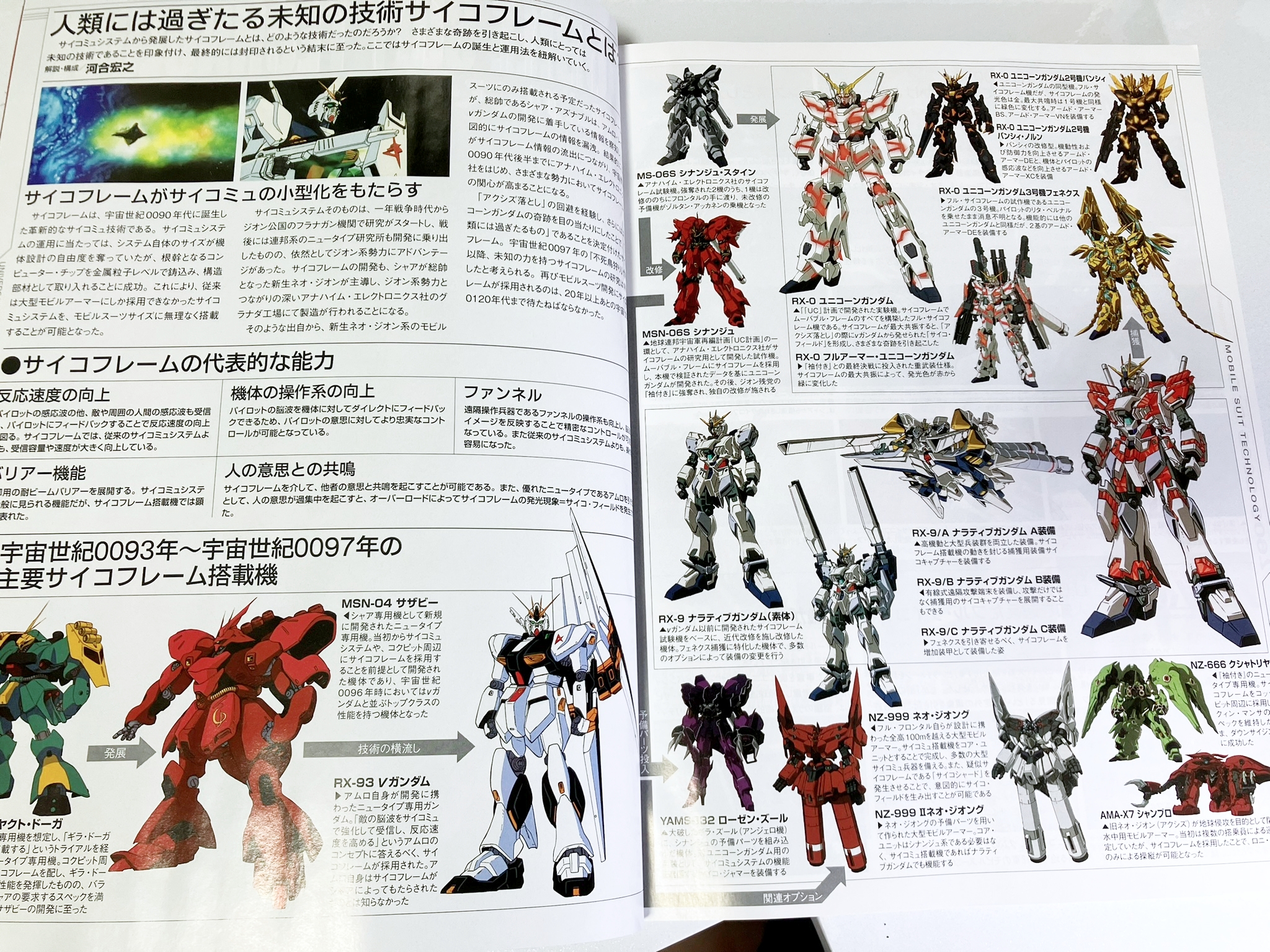 U.C.0090년대(0093~0097)의 모빌 슈트에 탑재된 사이코 프레임에 스포트를 맞추어 각각의 운용 방법과 함께, 그 기원이나 발전의 길이 어떠한 것이었는지를 사이코 프레임에 얽힌 모빌 슈트의 건프라 작례를 섞어 가면서 찾아 갑니다.