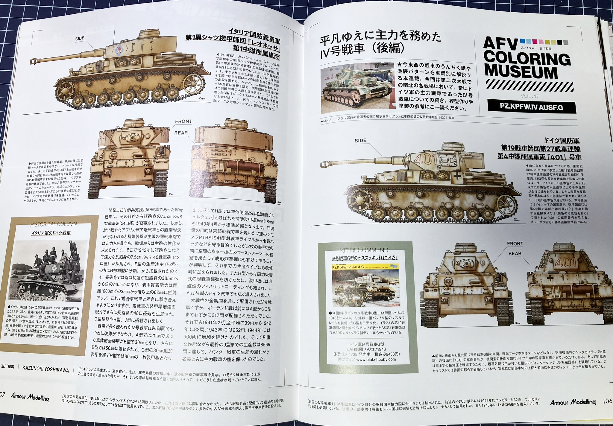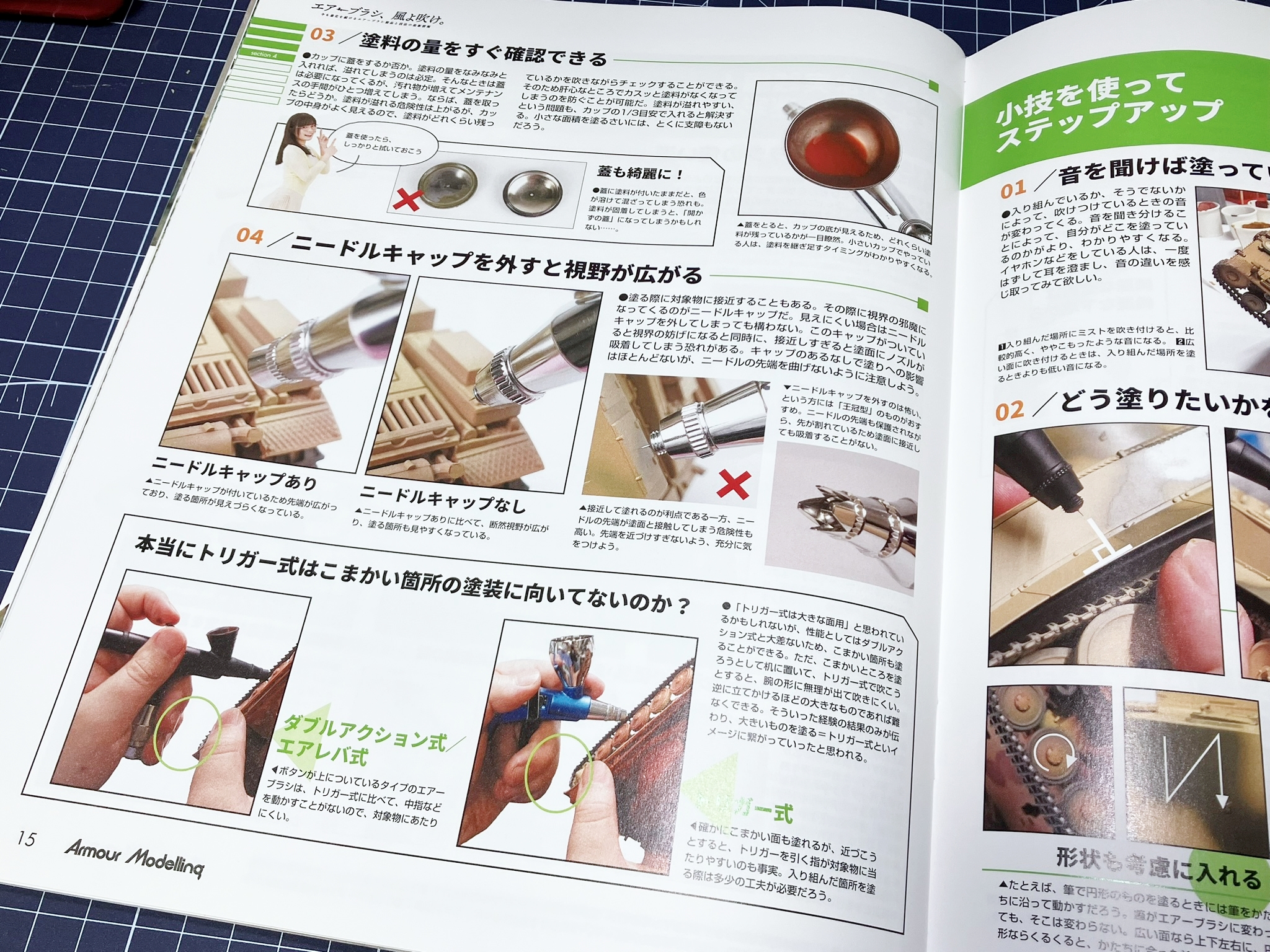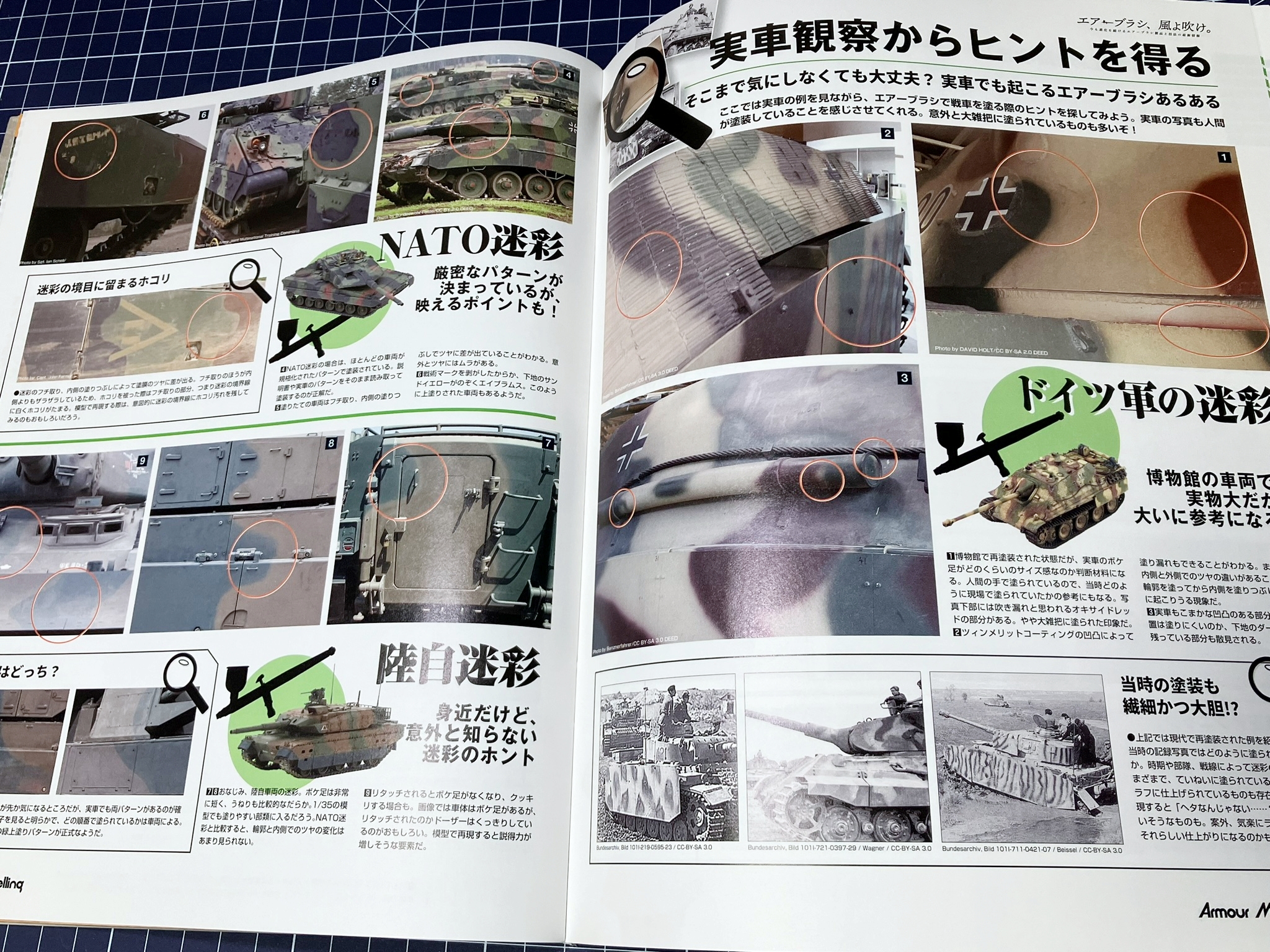 여태까지 에어브러시의 기초 강좌 라고 한다면 하비재팬의 영역이라는 느낌이 강했으나 (최근에 또 에어브러시의 교과서 라는 무크지도 발매했지요.) 이 아머 모델링은 또 다른 느낌으로 접근합니다.