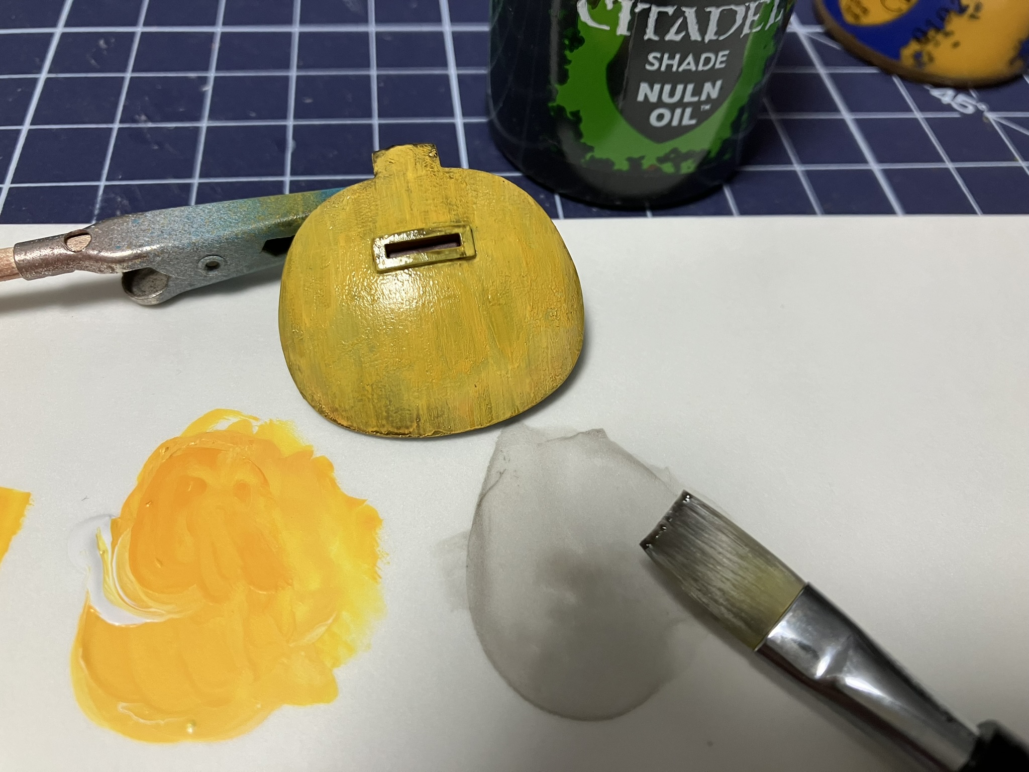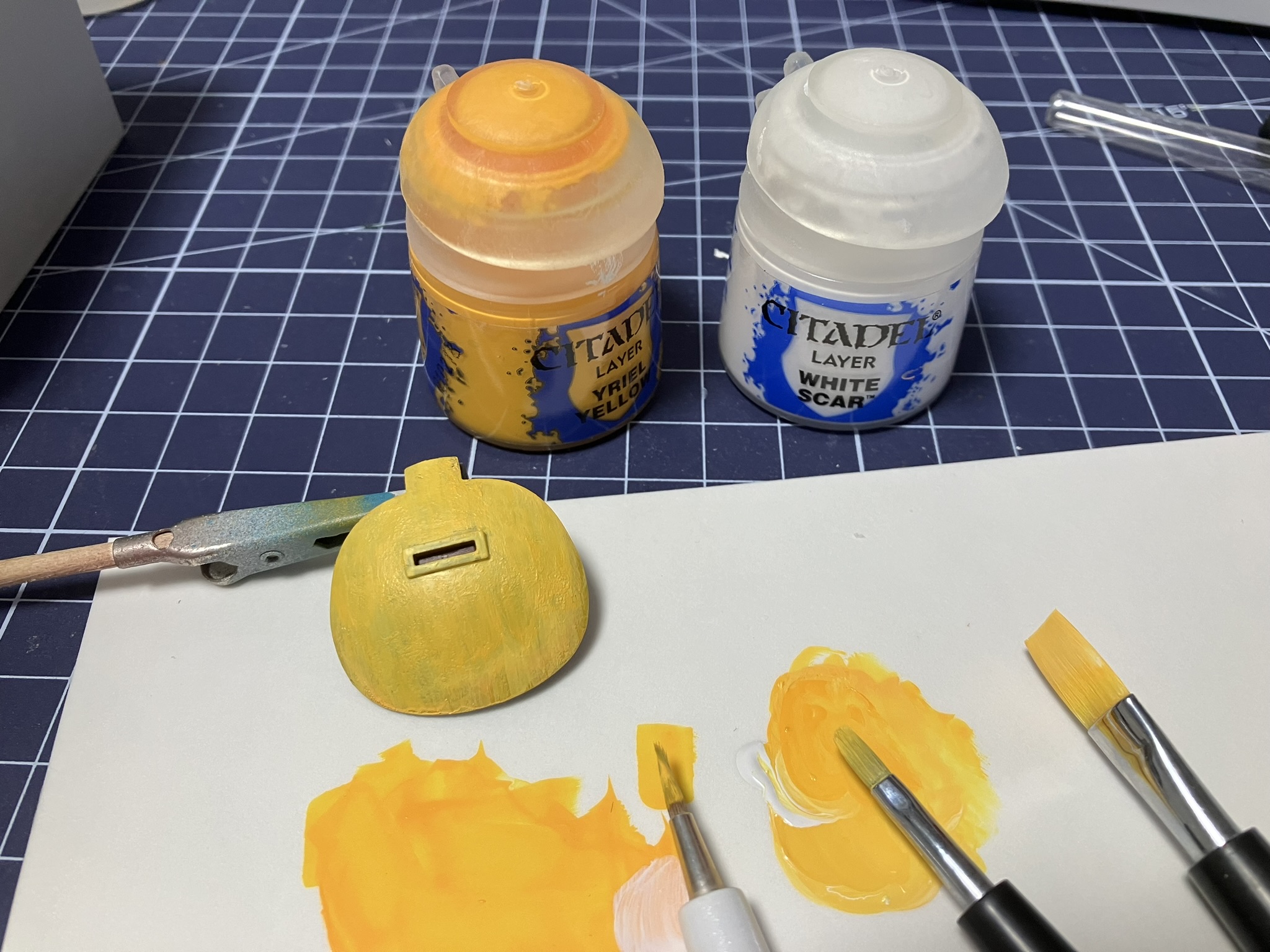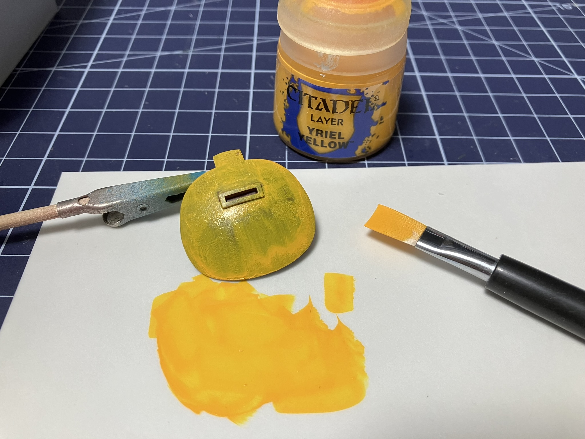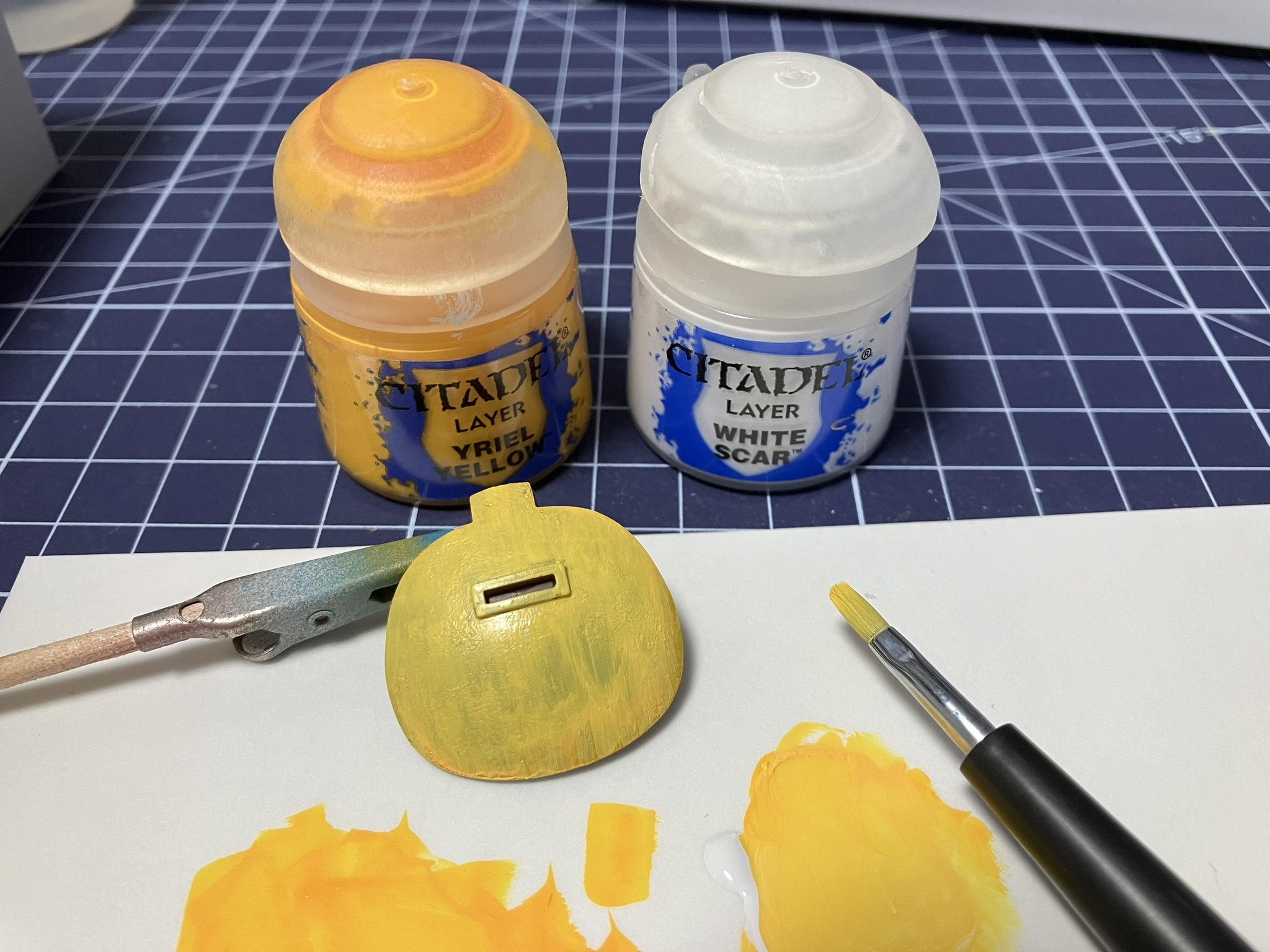 딱 맞는 색상은 시타델 컬러의 YRIEL YELLOW가 아닐까 싶어 바로 붓도색으로 정하게 되었습니다.