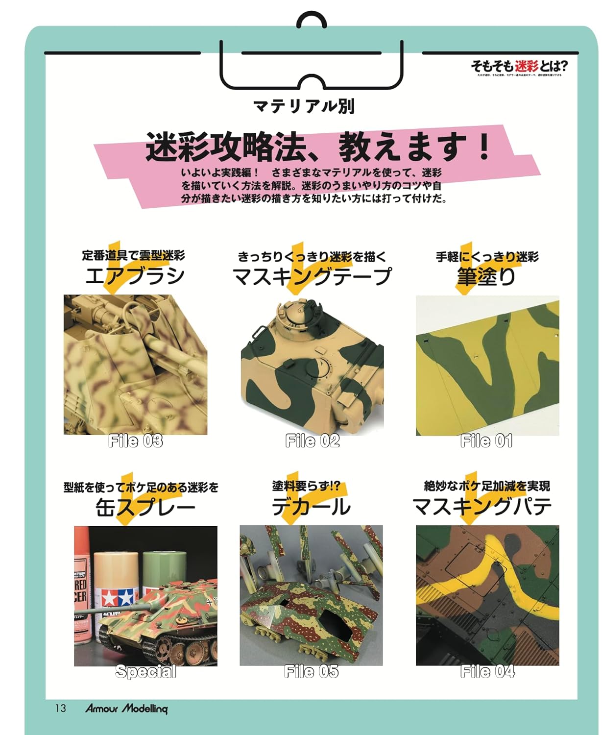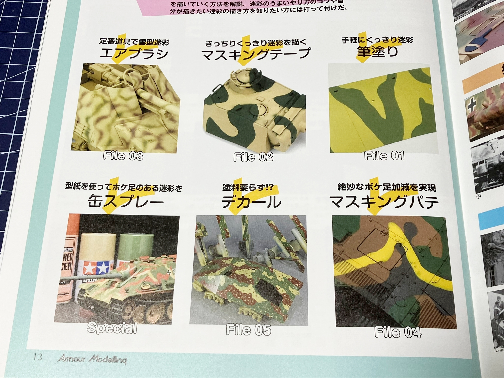 6월호는 미채도색 일명 위장 무늬를 위한 흥미를 자아내게 하기 위한 특집이었습니다. 평소에 위장 무늬에 흥미가 있으신 분들은 꼭 보시면 좋을 그런 특집이 되겠습니다. 저도 다음의 프라는 위장 도색으로 해볼까 해요.