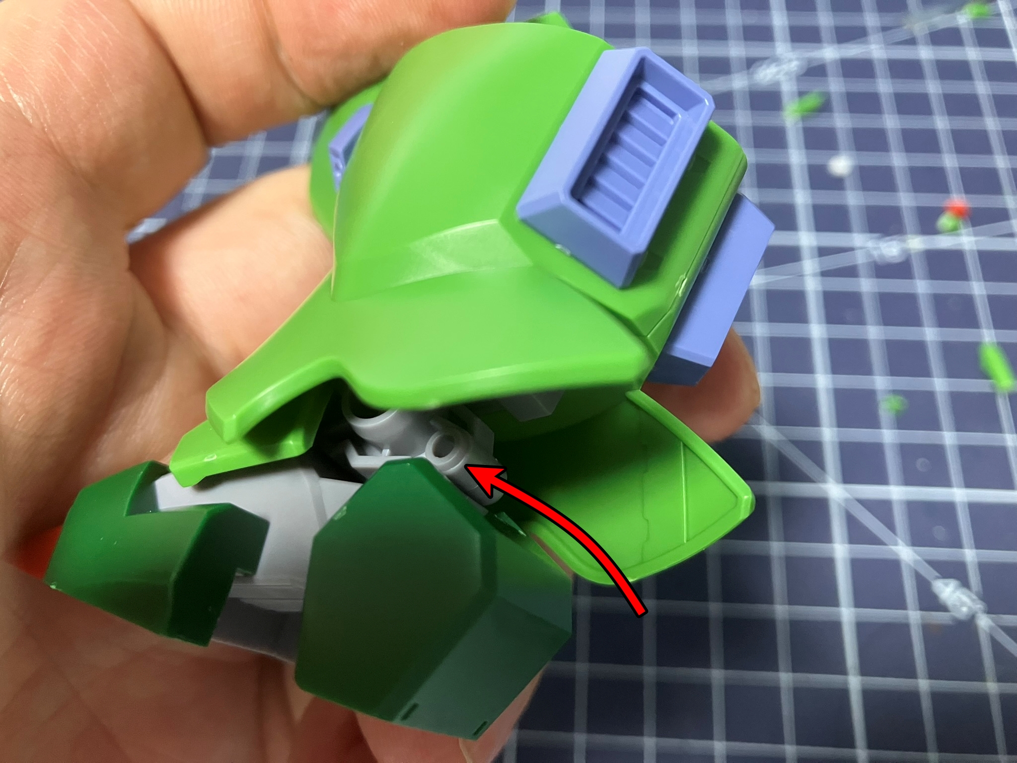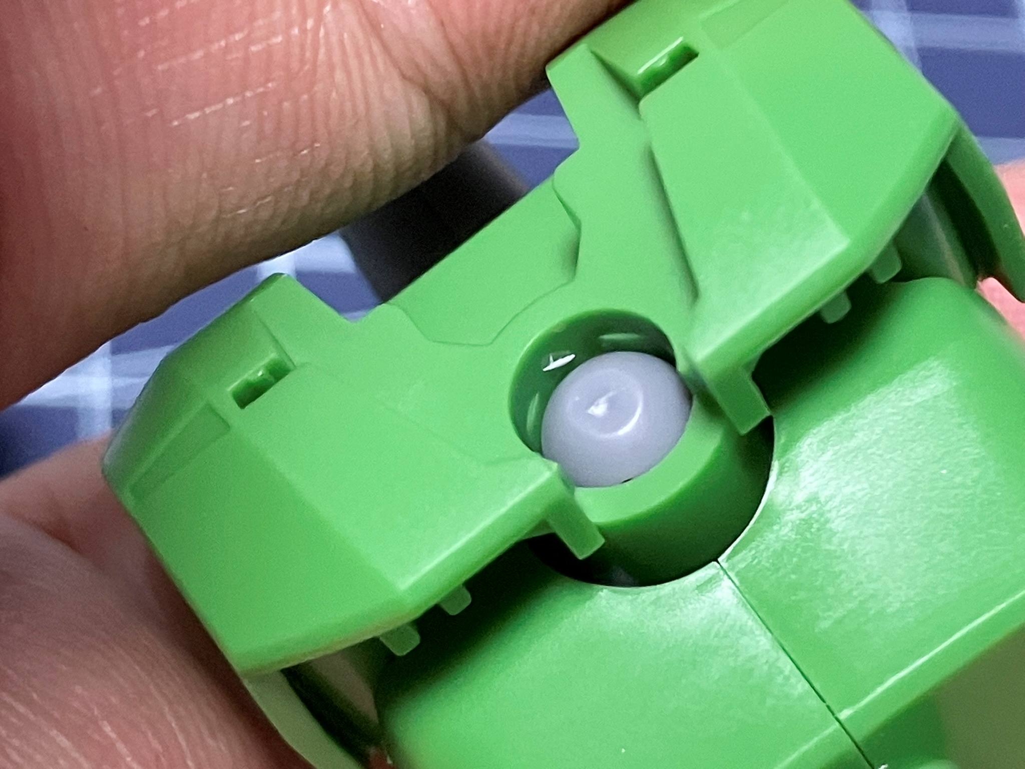 조립해도 포징 중에 자주 빠져서 많은 분들을 속상하게 했던 고질적이던 중간 볼조인트 식 허리관절의 빠짐문제는 구멍 부분에 돌기를 두 줄을 넣는 것으로 해결하고 있습니다.