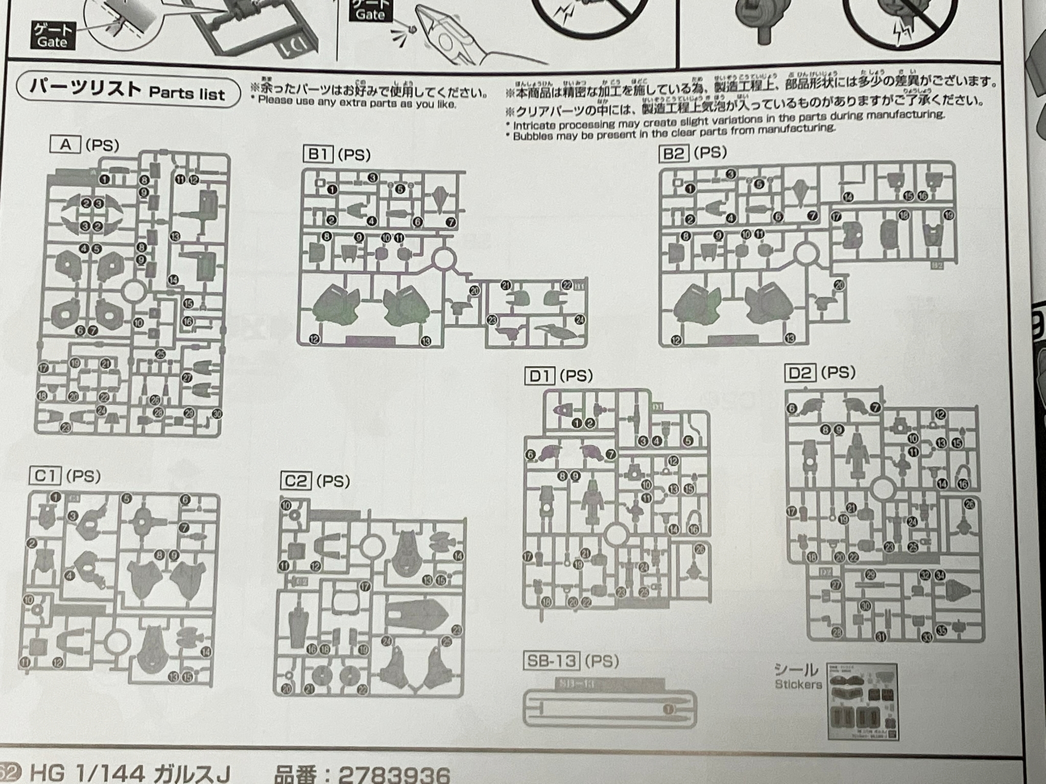 비슷한듯 다른 B1,2런너. 윗부분과 이음새가 동일한 것으로 봐서는 하단 부분만 교체하여 찍어낸 듯 합니다.