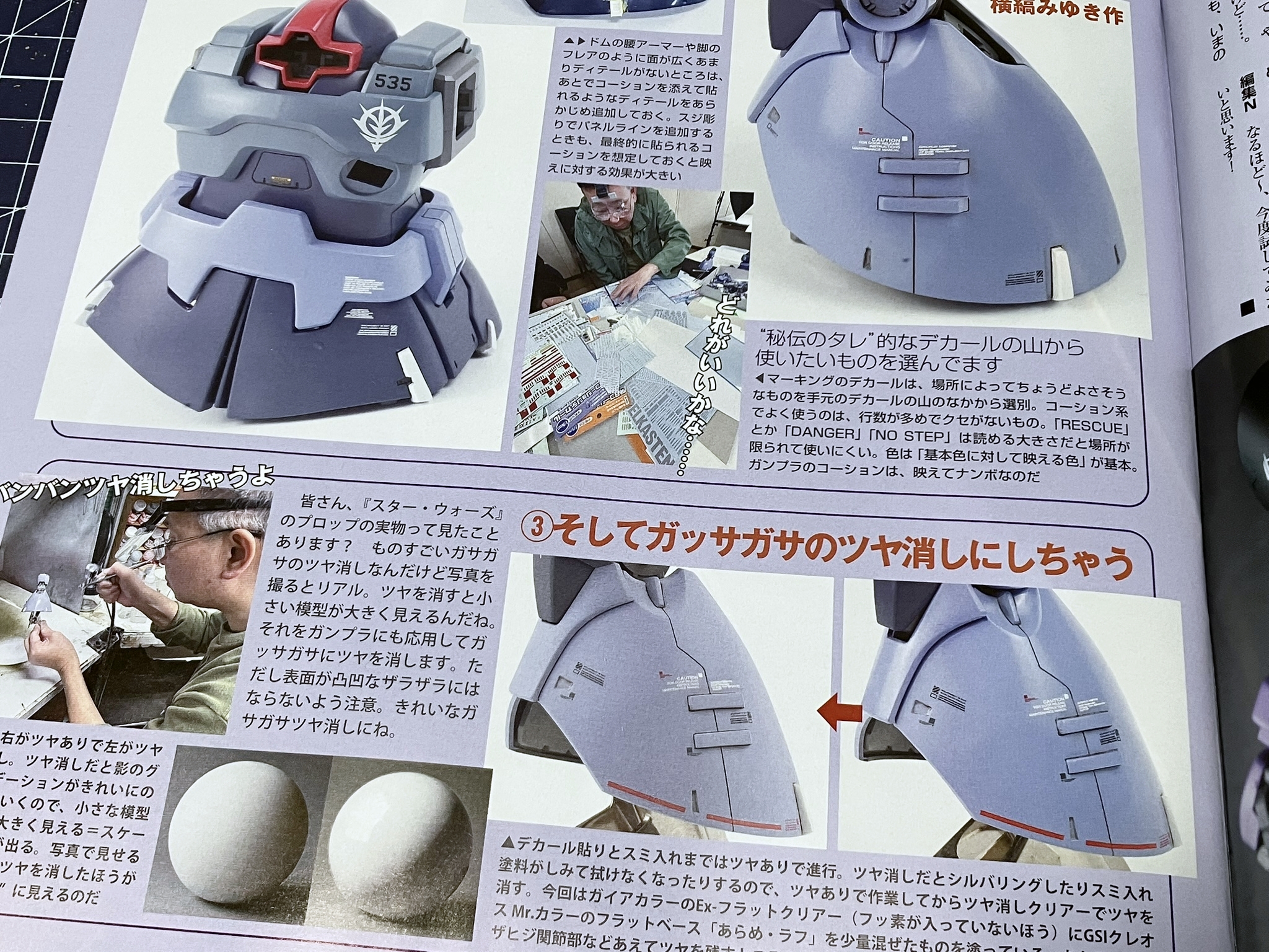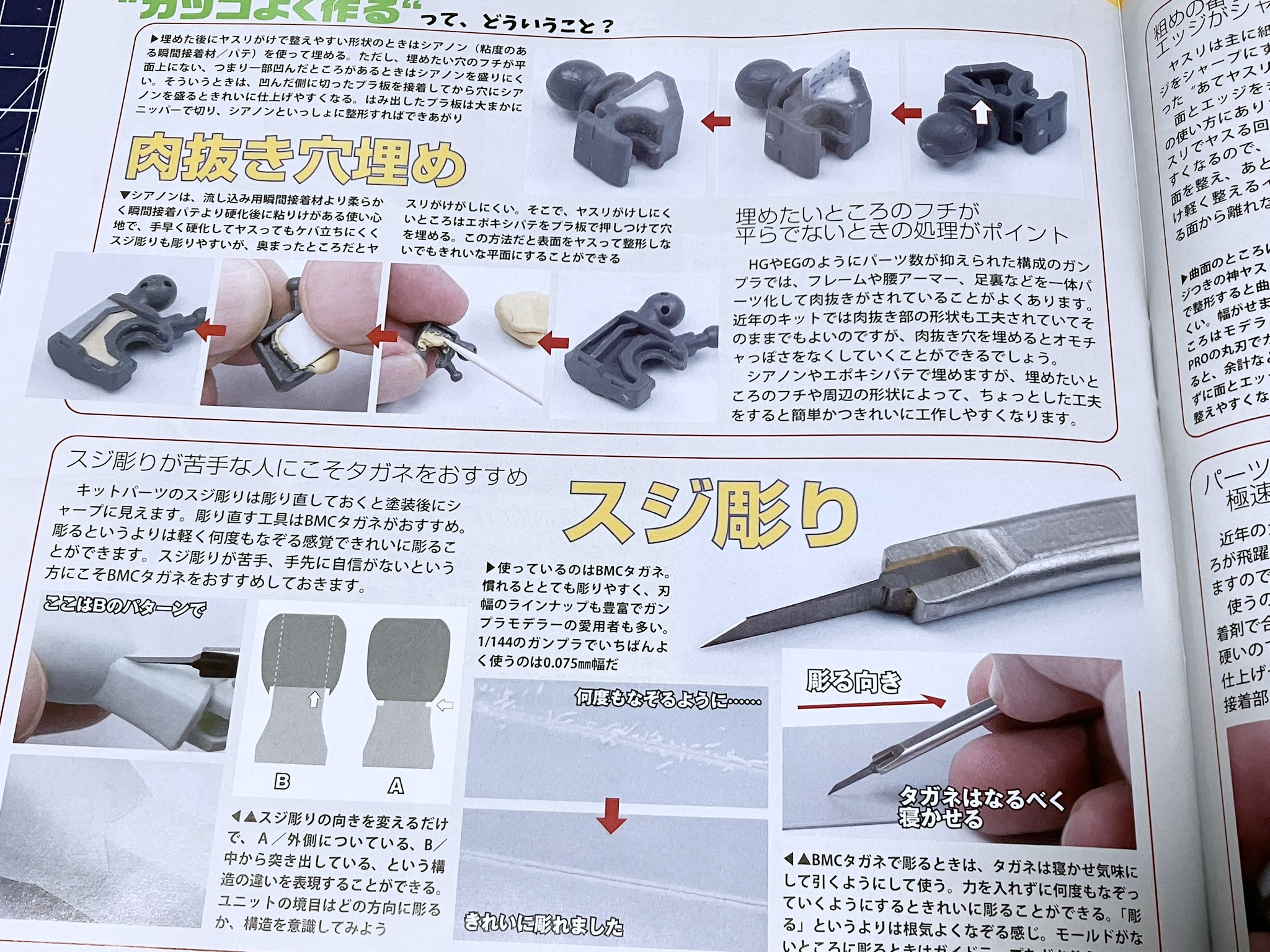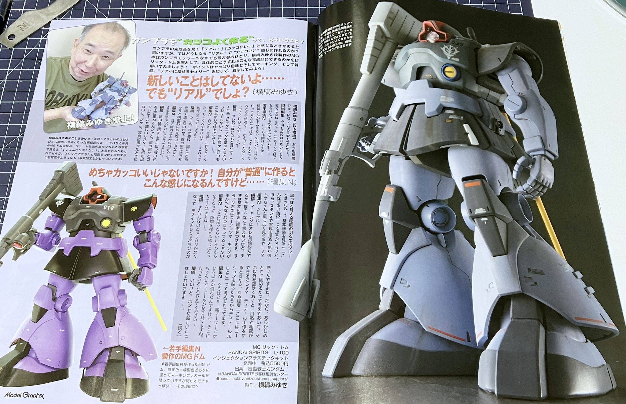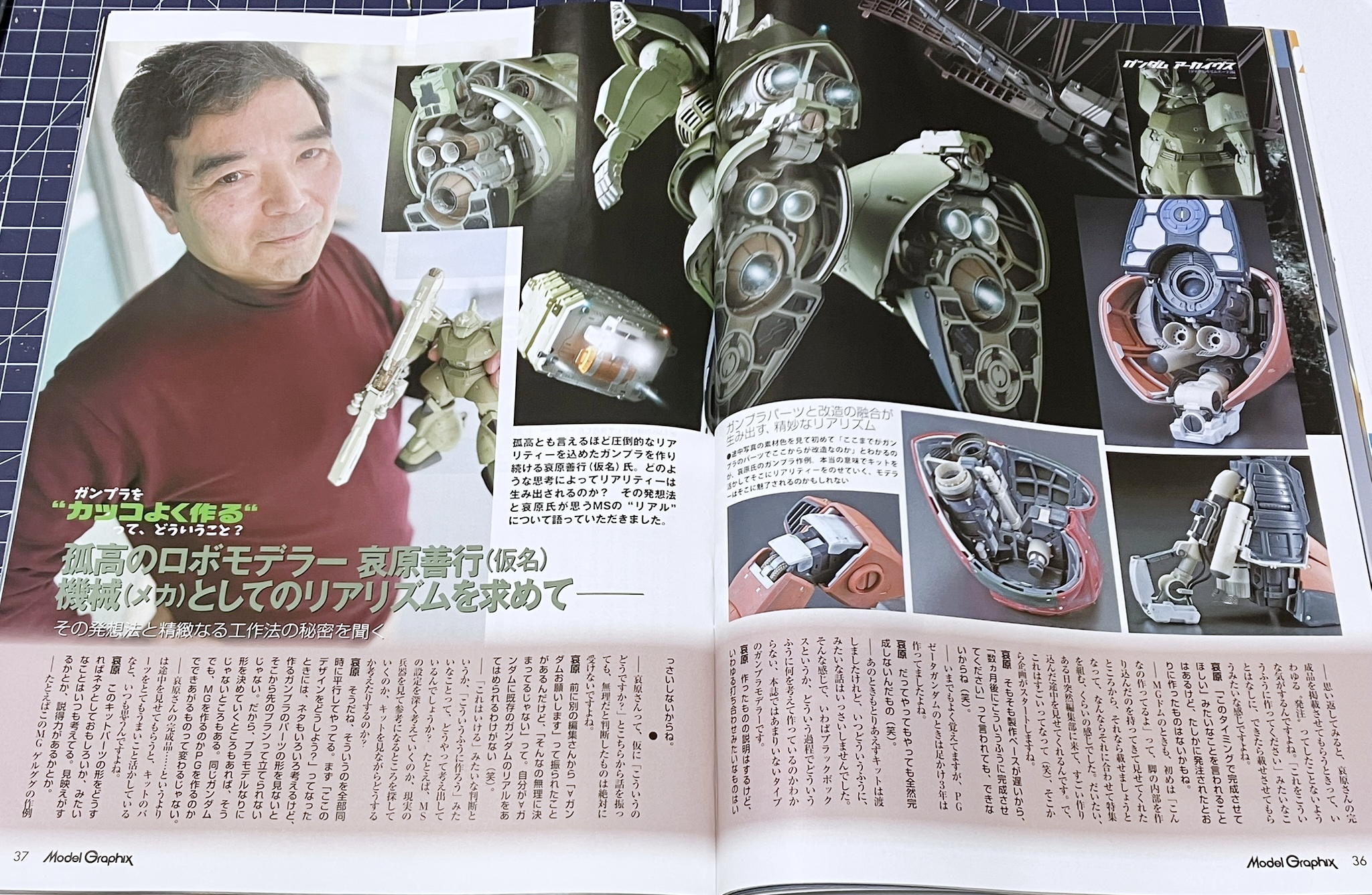 이번 호에서는 오랜만에 건프라 제작법 특집을 다룹니다. ‘자, 건프라를 멋지게 만들어 보자!’ 라는 말인데, 차분히 주변을 둘러보자면 요즘 건프라는 정말 퀄리티가 뛰어나죠. 옛날이라면 '어디를 몇mm 늘렸어요' 같은 식으로 차근차근 쌓아나가 남들과 다른 멋진 완성품으로 개조할 수 있었지만, 이제는 늘리고 싶은 부분도, 늘릴 필요도 없다는 느낌입니다. 지금은, 건프라를 내 방식대로 '멋지게' 만들려면 어떻게 해야 할까? 이번 특집에서는 물론 기술 해설도 진행하지만, 그뿐만 아니라 ‘건프라를 어떻게 생각하고 만들 것인가?’라는 점에도 초점을 맞추었습니다.