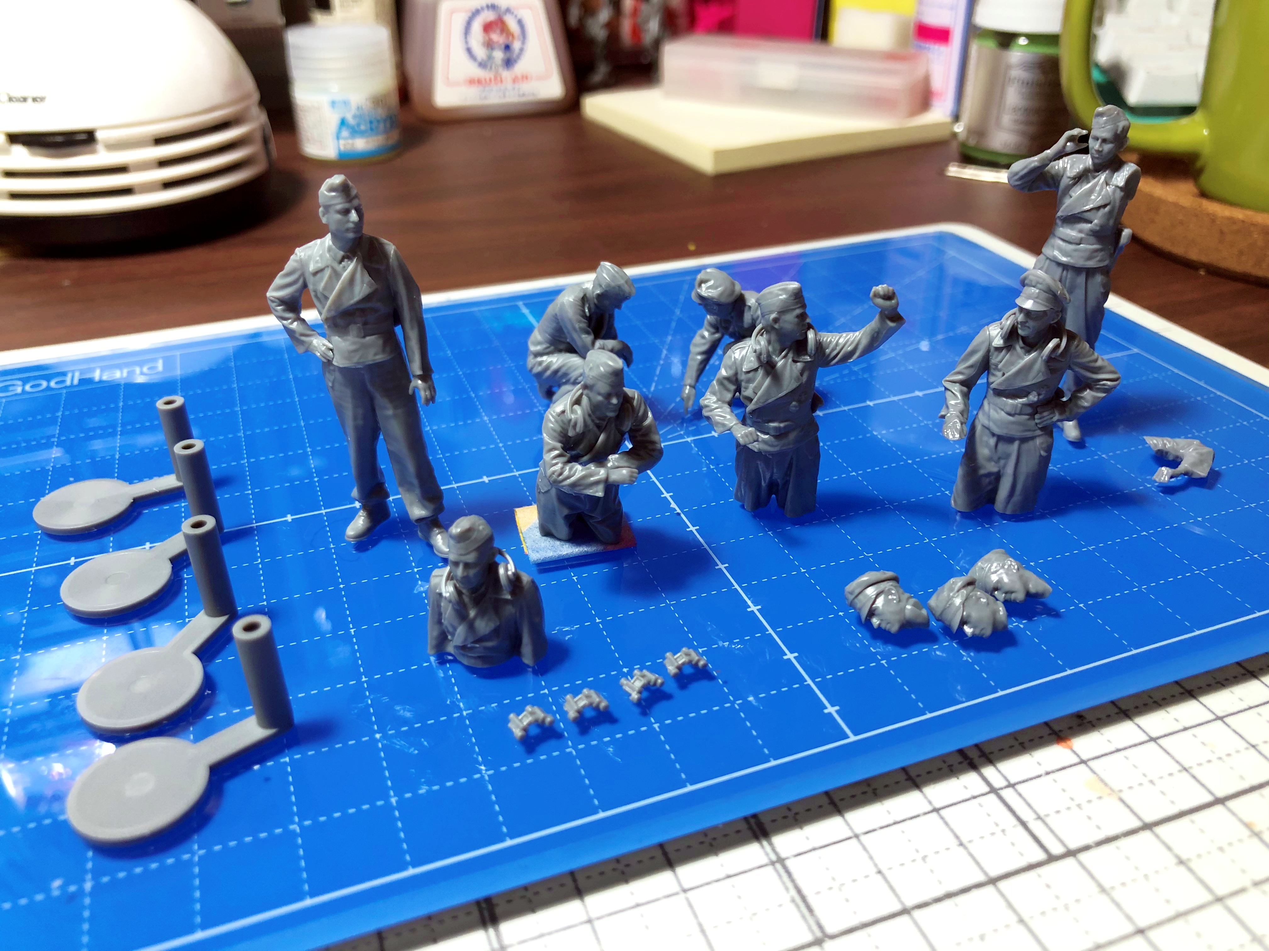 전신 병사가 4명 반신 병사가 4명 남는 머리파츠가 3개, 그리고 전차용 스탠드가 4개 부속되어 있습니다.